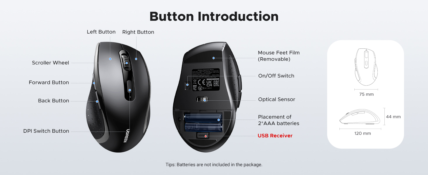 The UGREEN 2.4G Wireless Mouse combines precision, comfort, and long battery life for seamless productivity. Whether you’re using a laptop, PC, or MacBook, its 1600 DPI sensor, ergonomic shape, and plug-and-play setup make it ideal for work, study, or casual gaming.