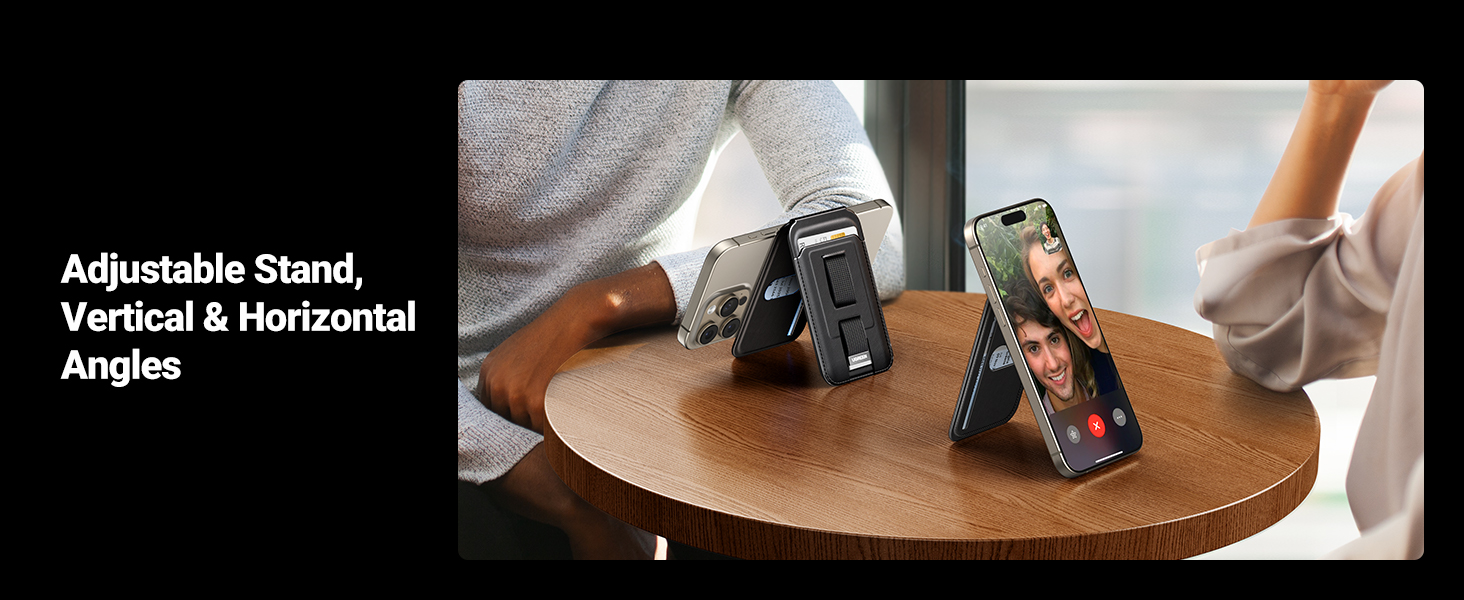 Transform any surface into your personal entertainment hub. The durable and adjustable hinge allows for smooth angle adjustment between 30° and 150°, making it ideal for watching tutorials, attending Zoom meetings, or browsing social media. The cleverly designed nylon finger loop offers an extra layer of security and comfort when holding your phone. This wallet is the perfect companion for your daily commute, a day at the office, or travel. Pair it with a Ugreen power bank to ensure you never run out of battery. It’s an essential part of a modern mobile lifestyle and a standout in our collection of iPhone MagSafe accessories. For complete protection, consider pairing it with a Ugreen magnetic phone case. Explore our best sellers to find more top-rated products.