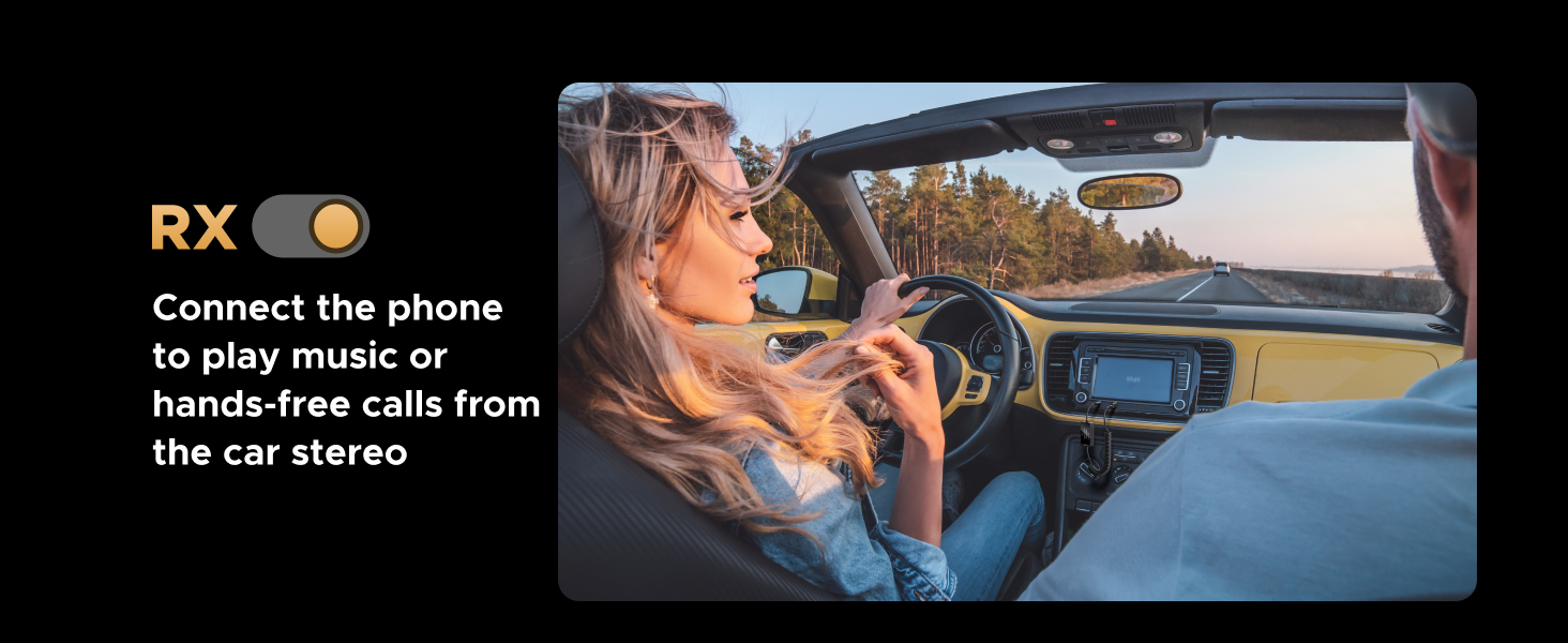 - 2 In 1 Bluetooth Transmitter Receiver: In TX mode, connect to devices like airplanes, TVs, and more without Bluetooth, then connect Bluetooth headphones to listen to music. In RX mode, turn non-Bluetooth devices like car audio or old speakers into Bluetooth-enabled ones, and then play music from phones, computers, and more. Enjoy cable-free freedom via Bluetooth Transmitter Receiver, anywhere, anytime.