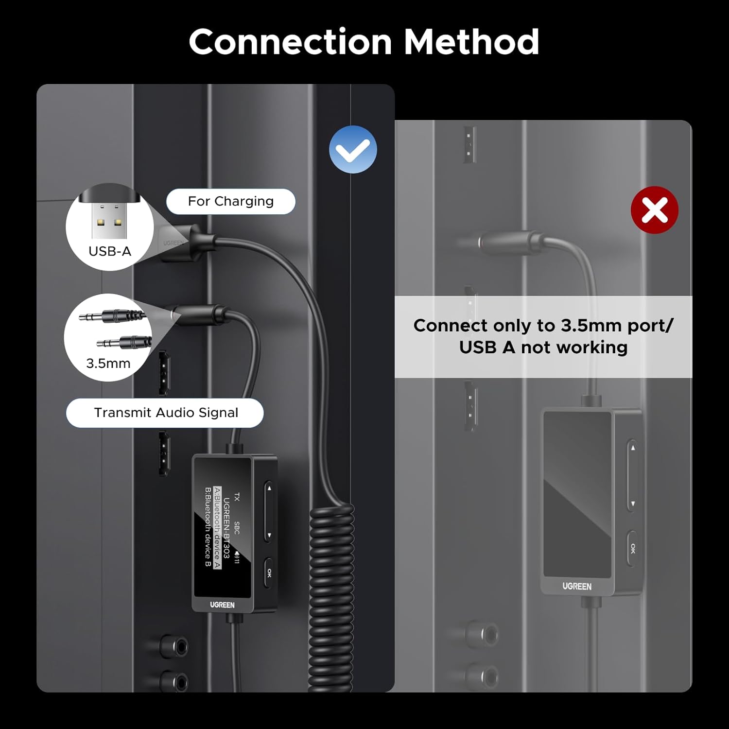 UGREEN 45236 Bluetooth 5.4 Transmitter Receiver with Built-in Microphone for Hands-Free Calls