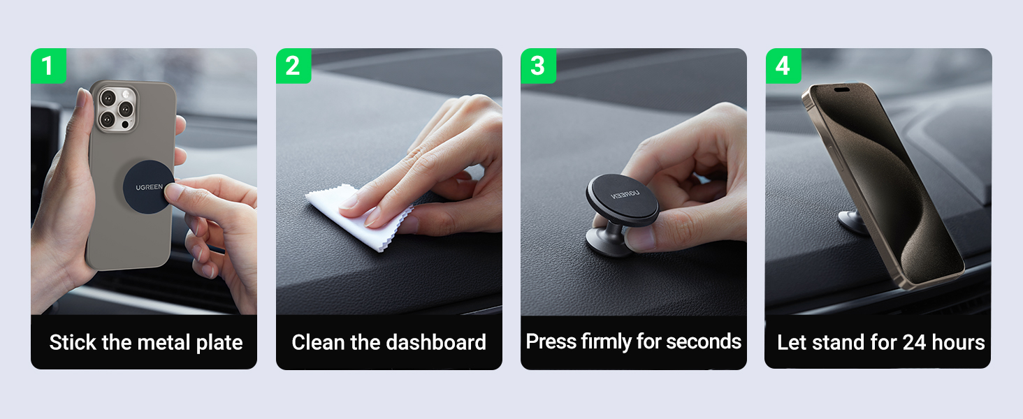 - Please leave the adhesive to stick firmly for 24 hours before mounting your phone to the car dash