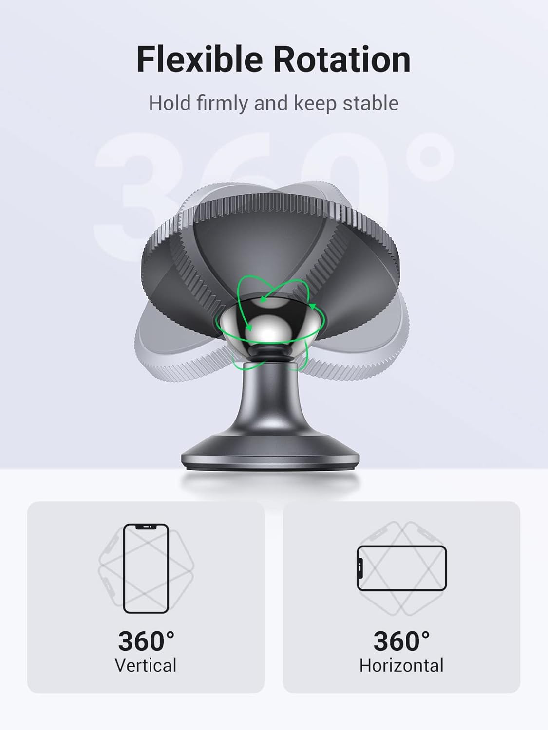A: Yes, the 360-degree rotatable magnetic ball allows you to tilt and rotate your phone to any orientation – portrait for navigation, landscape for movies, or any angle in between. Purchase from the UGREEN Official Distributor in Pakistan to ensure you receive genuine products with full warranty support.