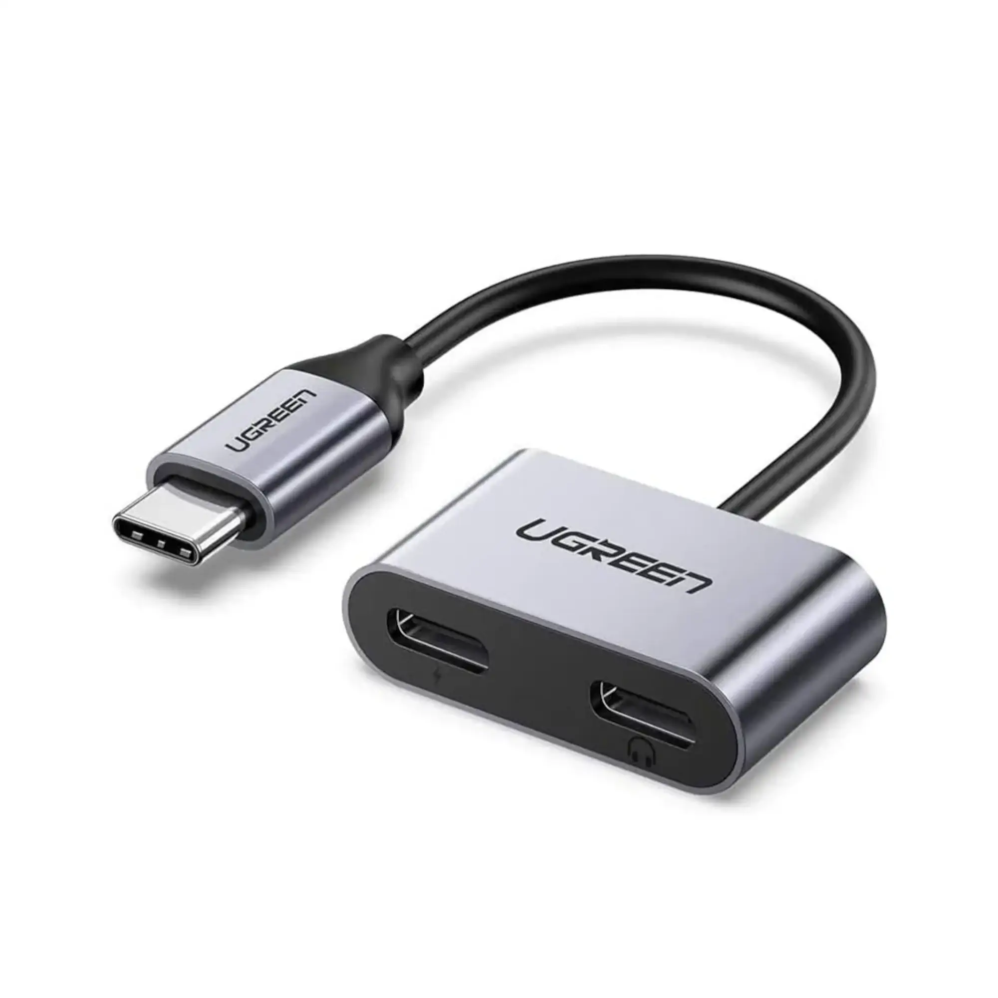 UGREEN 60165 2-in-1 USB-C to Audio & Charging Adapter, 60W PD Quick Charge, Support for Digital Earphones, Compatible with iPad Pro, Samsung, Huawei, & More – Aluminum Case, TPE Jacket, 3A Max Charging