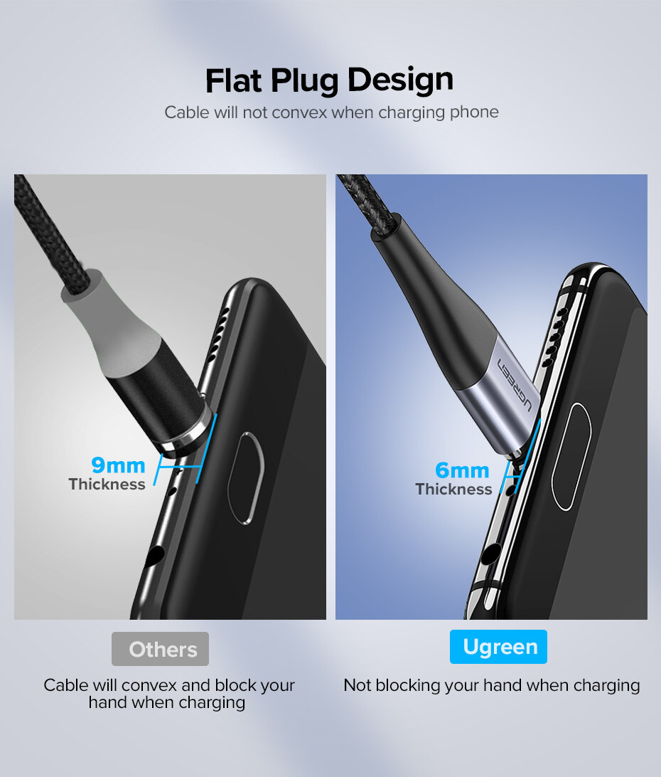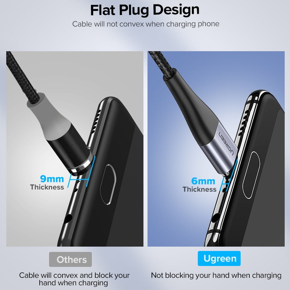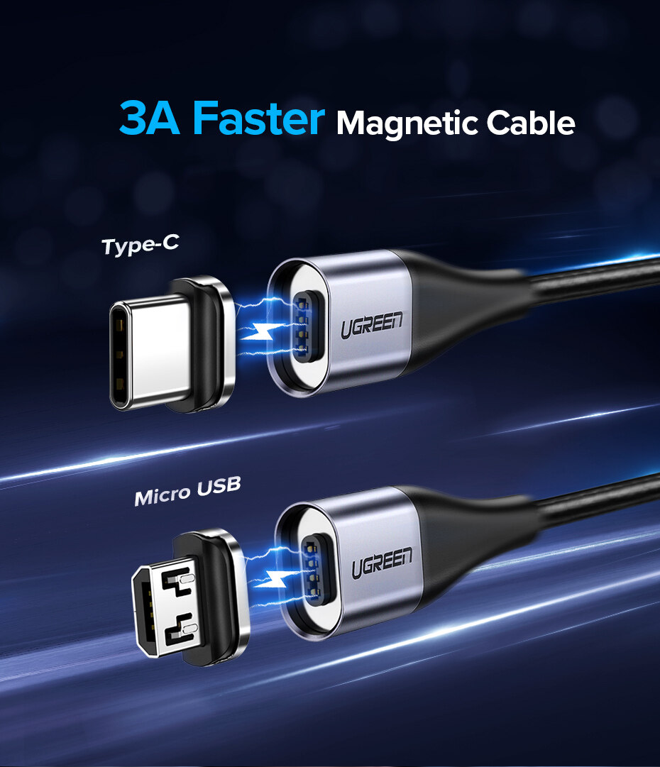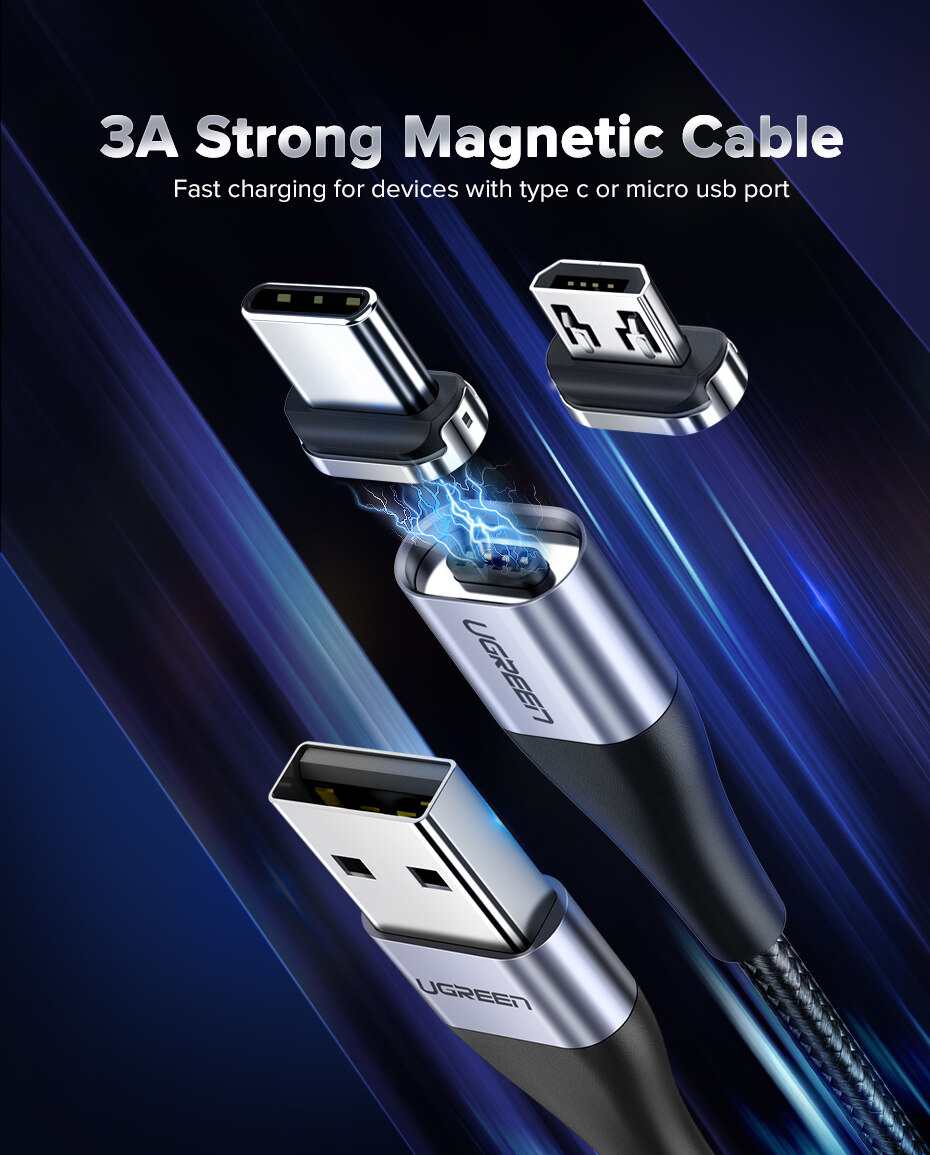 UGREEN 60207 Magnetic Charging Cable with USB-C (60210) & Micro (60209) USB Plugs – 1 Meter, 3A Qualcomm Quick Charge 3.0, LED Indicator, Dust-Proof, Fast Data Transfer, for Samsung, Huawei, Xiaomi