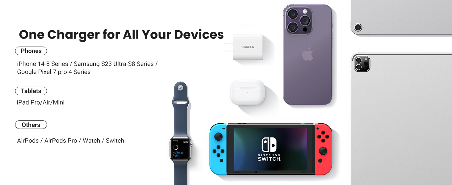 - Universal Compatibility: This charger is compatible with the iPhone 14/14 Pro/13 Series/12 Series/iPhone 8 and later series, as well as the Galaxy S Series, tablets, Airpods, Switch, and more.