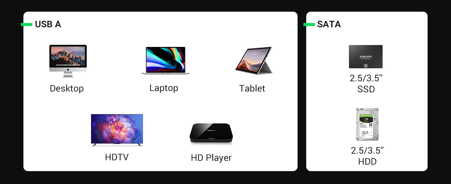 Ideal for tech enthusiasts, IT professionals, and casual users alike, the UGREEN SATA to USB Adapter is a compact yet powerful tool for anyone looking to streamline their data management process. Whether you’re upgrading your storage or simply sharing files, UGREEN has you covered with a reliable, high-performance solution.