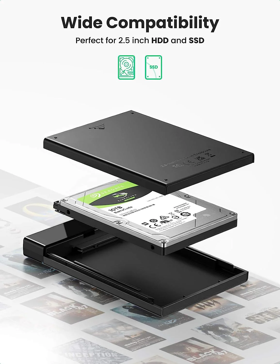 The durable ABS construction protects your hard drive from physical damage, while the compact and lightweight design ensures easy portability. Additionally, the UGREEN 60735 supports UASP (USB Attached SCSI Protocol), which boosts transfer speeds and reduces CPU usage for a smoother experience. Whether you’re a tech enthusiast, a student, or a professional, this hard drive enclosure is a must-have for fast and secure data access.