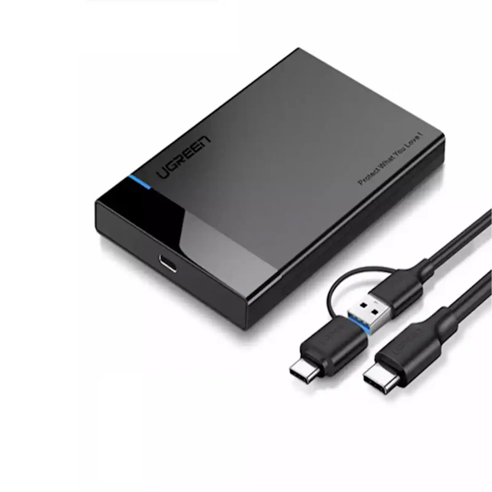 UGREEN 60735 USB 3.1 2.5″ Hard Drive Enclosure, 6Gbps High-Speed Data Transfer, with USB-A to USB-C & USB-C to USB-C Cables, Universal Compatibility, Portable and Durable Design