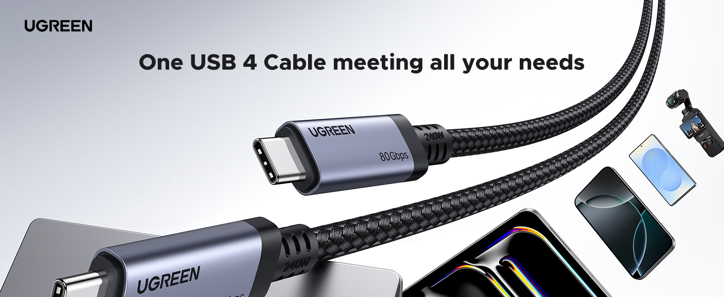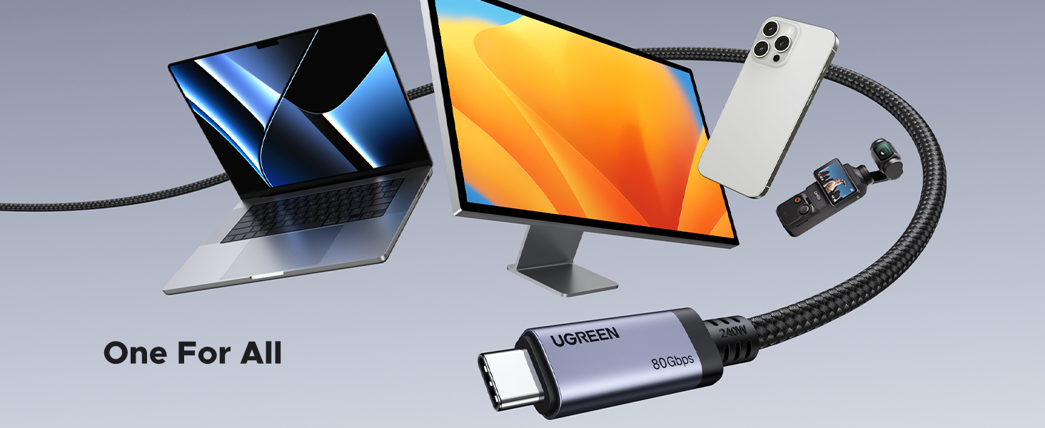 The UGREEN 65383 Thunderbolt 4 USB-C Cable redefines connectivity with industry-leading 240W charging, 80Gbps data transfer, and 16K display support – all in one future-proof cable.