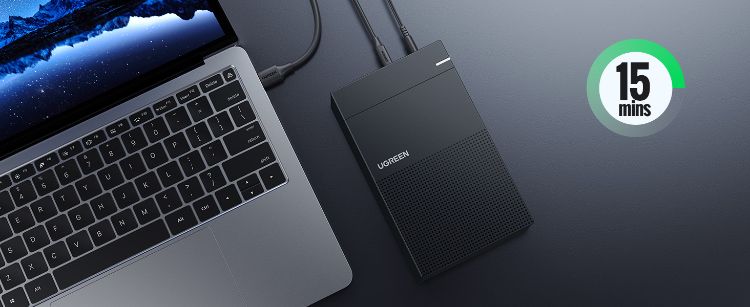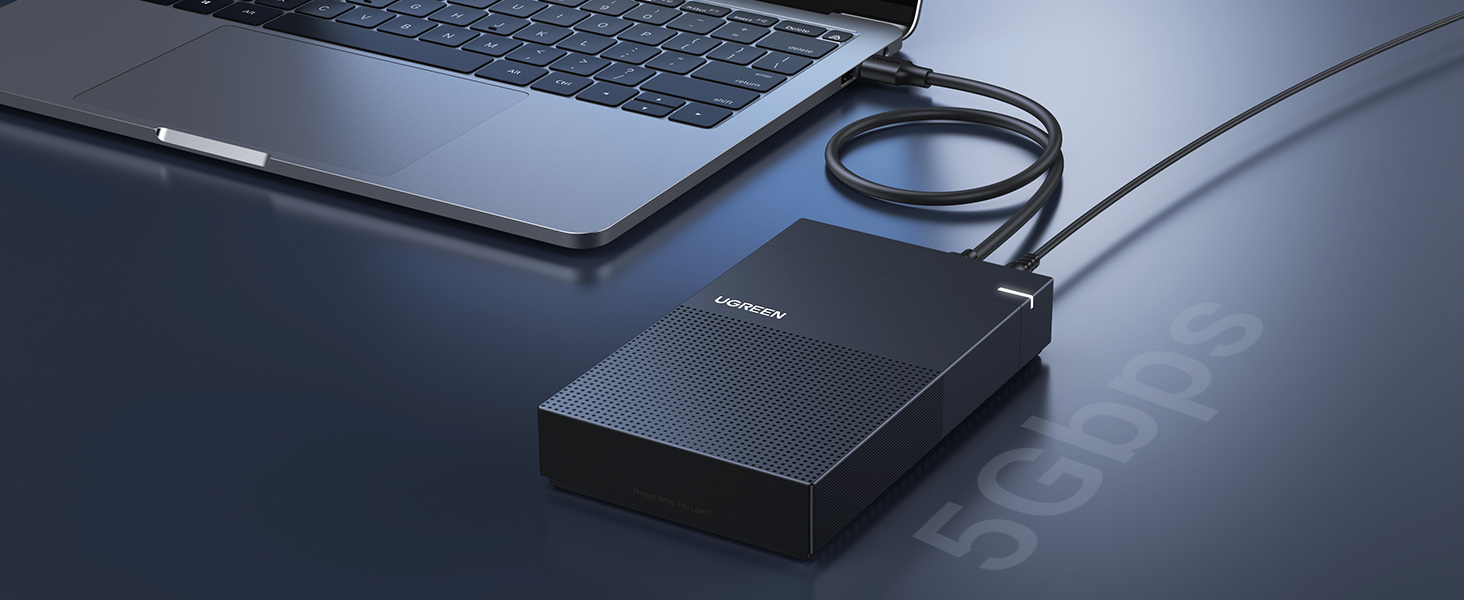 Equipped with USB 3.0 and SATA III interfaces, the UGREEN 70337 Hard Drive Enclosure delivers ultra-fast data transfer speeds of up to 5Gbps. Thanks to UASP (USB Attached SCSI Protocol) support, the enclosure provides up to 70% faster performance compared to traditional USB 2.0, making it up to 10 times faster. This speed ensures that large files such as 4K videos, high-resolution images, or complex software can be transferred within seconds, boosting productivity and saving time.