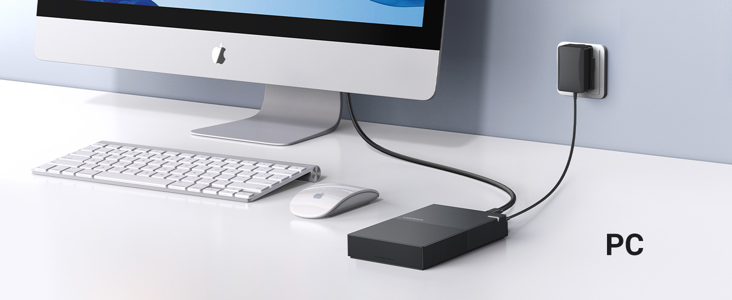 The included 12V/2A power supply guarantees stable and reliable performance, even when handling large-capacity drives up to 20TB. This ensures smooth and uninterrupted data transfer and access, whether you’re working with large files or multitasking with multiple applications.