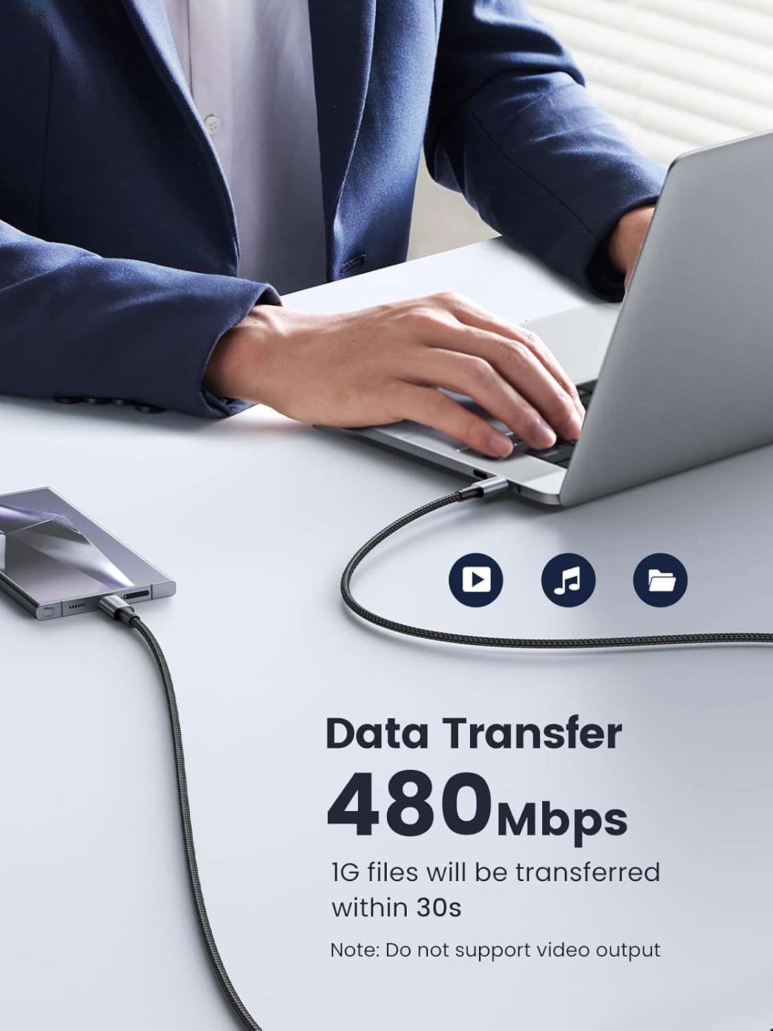 - Super Fast Data Transfer: This type c data cable transfers data at up to 480Mbps to quickly transfer 1GB movies, music, documents or entire photo libraries in less than a minute