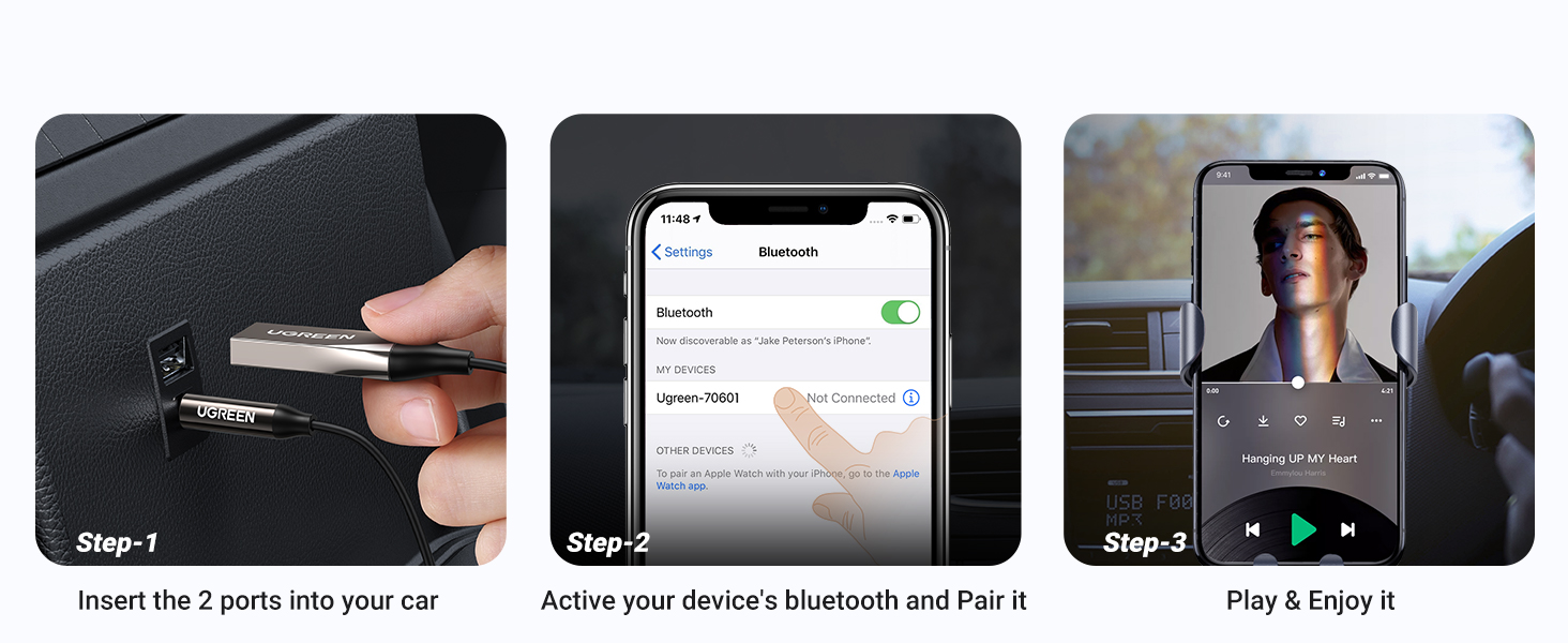 3. Turn on the Bluetooth in your cell phone, then click to pair, which allows you to enjoy your music wirelessly.