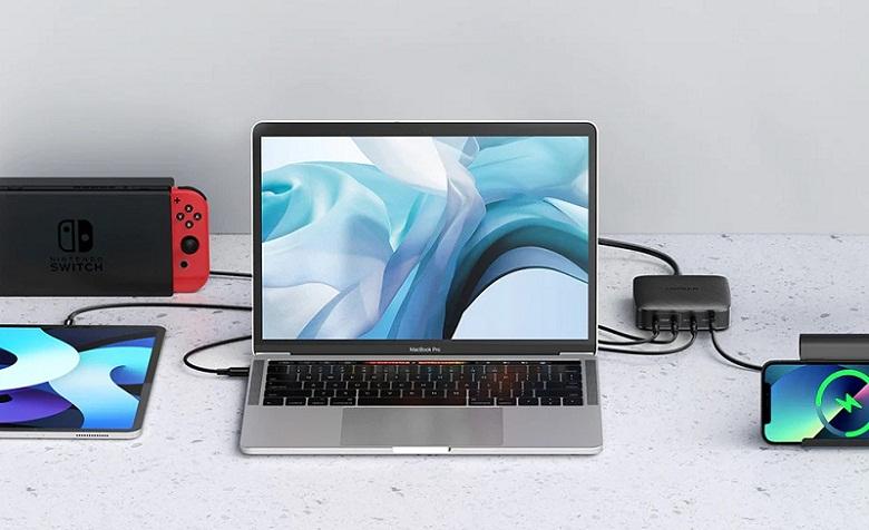 With its sleek, ultra-thin design, it is easy to carry around and won’t take up much space in your bag. The charger features four USB-C ports that support Power Delivery (PD) and Programmable Power Supply (PPS), enabling faster charging for devices like MacBook Pro, iPhone 14 Pro Max, Dell XPS, iPad Pro, Samsung Galaxy S23 Ultra, and many more.