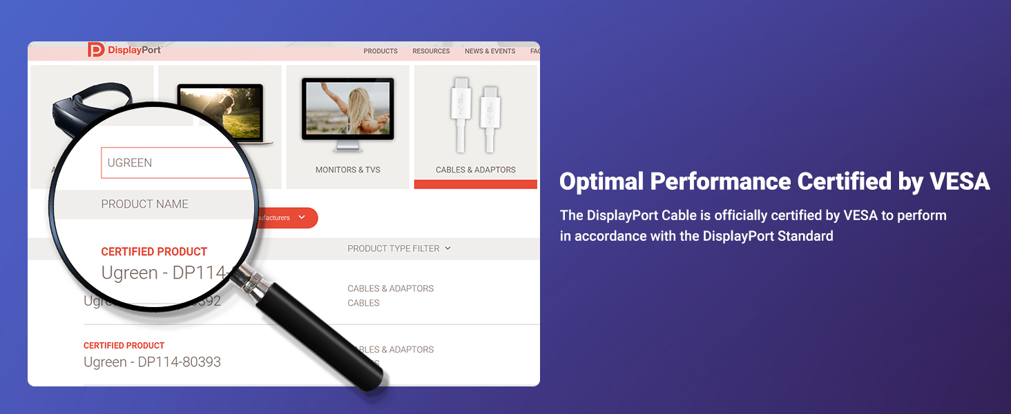 UGREEN 80393 VESA Certified 8K DisplayPort Cable, DP 1.4 Cable Displayport to Displayport Cable Support 8K@60Hz, 4K@240Hz, FreeSync, G-Sync, HDR, 32.4Gbps for HDTVs, Displays, Monitors, Graphics, PC