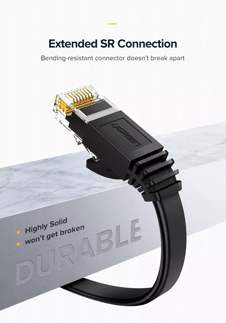 Each UGREEN network cable is double shielded. It features aluminum foil shielding on each twisted pair and an additional layer of shielding around the entire wire bundle. This robust design drastically reduces interference and guarantees a stable connection. No more lag during gaming or buffering while watching your favorite shows.