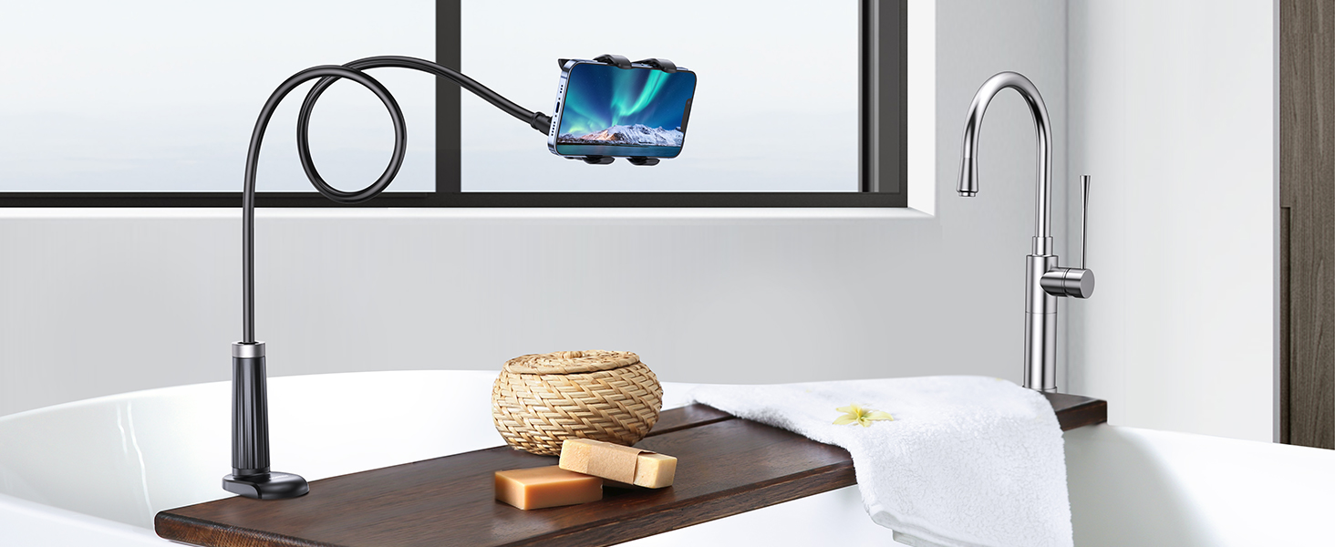 Crafted from premium ABS and silicone materials, the extra-long 90cm gooseneck arm is both flexible and durable, allowing you to effortlessly position your phone exactly where you need it. Whether you’re in the kitchen, at your home office desk, or relaxing in bed, this holder brings your screen to the perfect eye level. The 360-degree rotating clamp ensures you can easily switch between portrait and landscape mode for any activity.