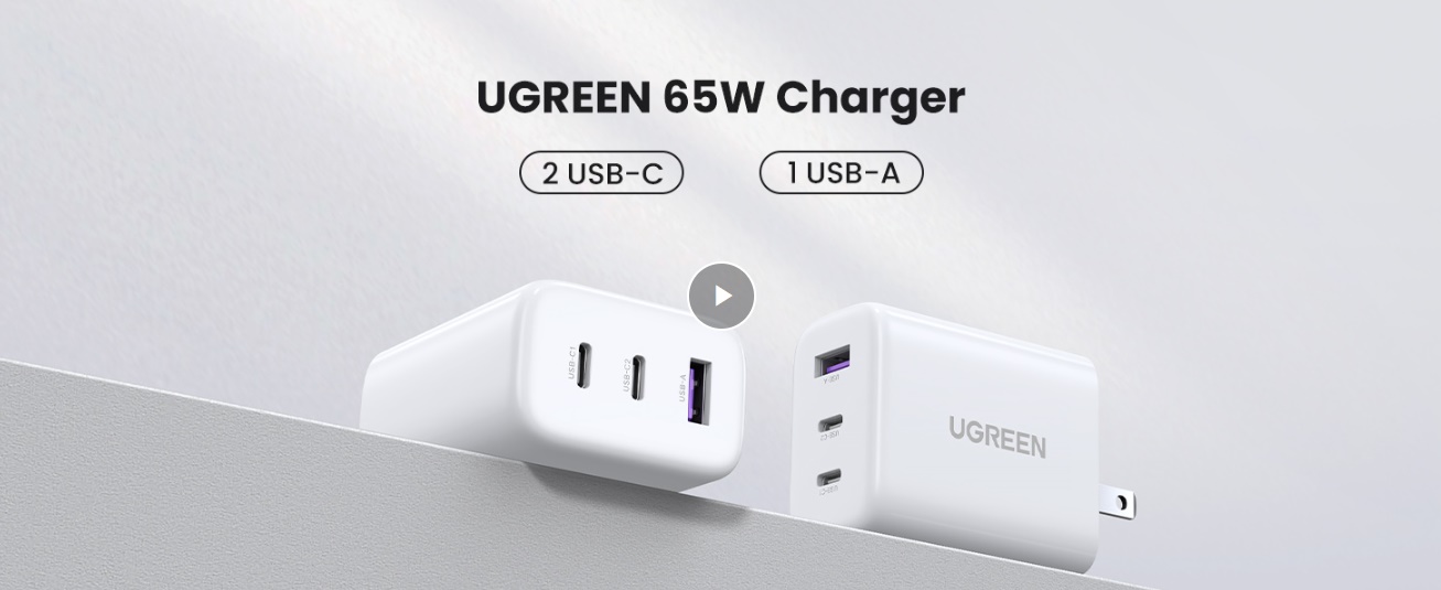 UGREEN 90495 65W USB C Charger 3-Ports Compact Foldable US Plug