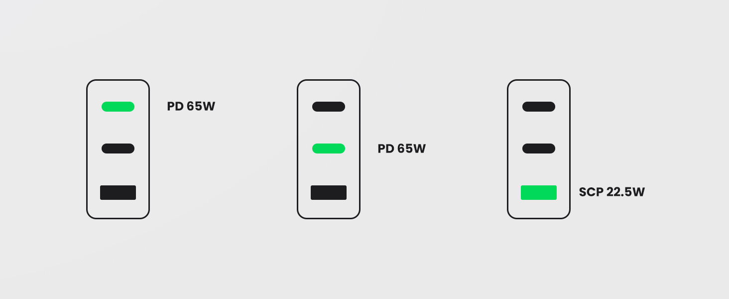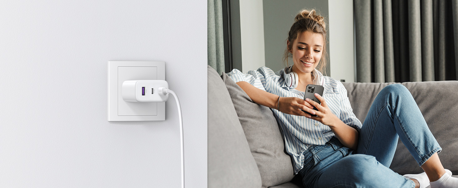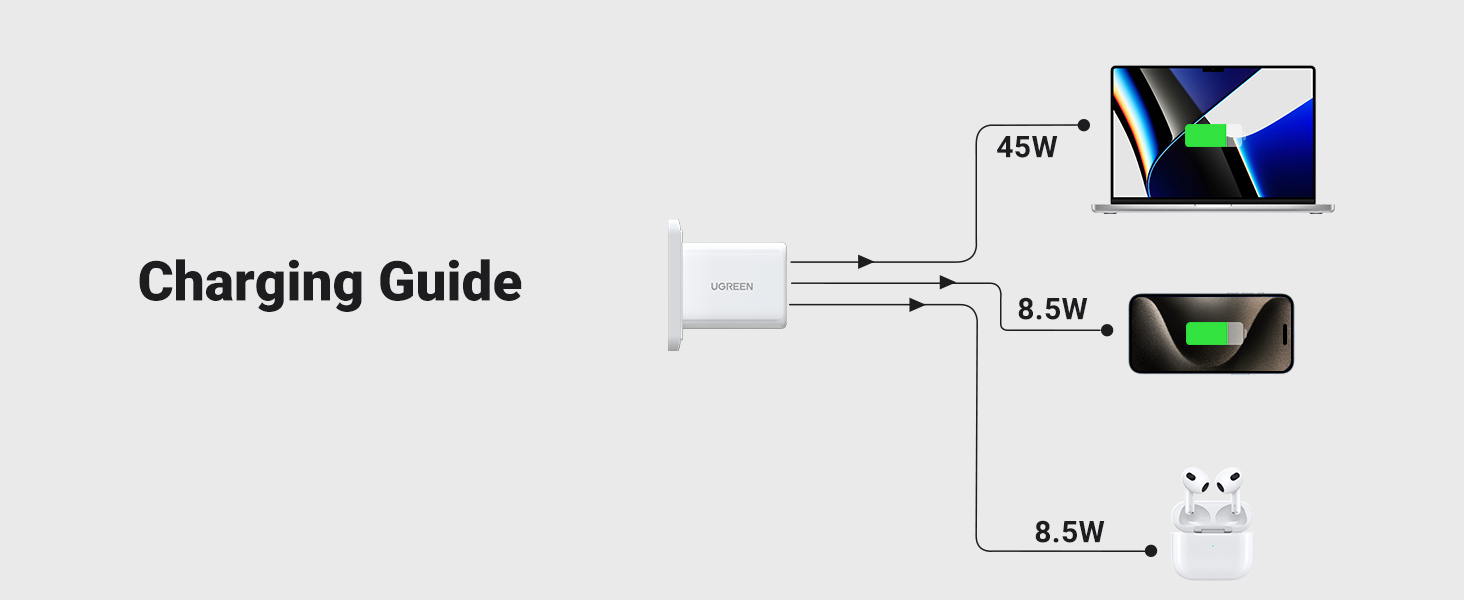 - 65W Max Power Delivery: Connect a single device for 65w of max charge, which can power an iPhone 15 at full speed from 0% to 60% in 30 minutes. And it can charge an iPhone 15 to 60% and a MacBook Pro 13" to 29% at the same time in just 30 minutes