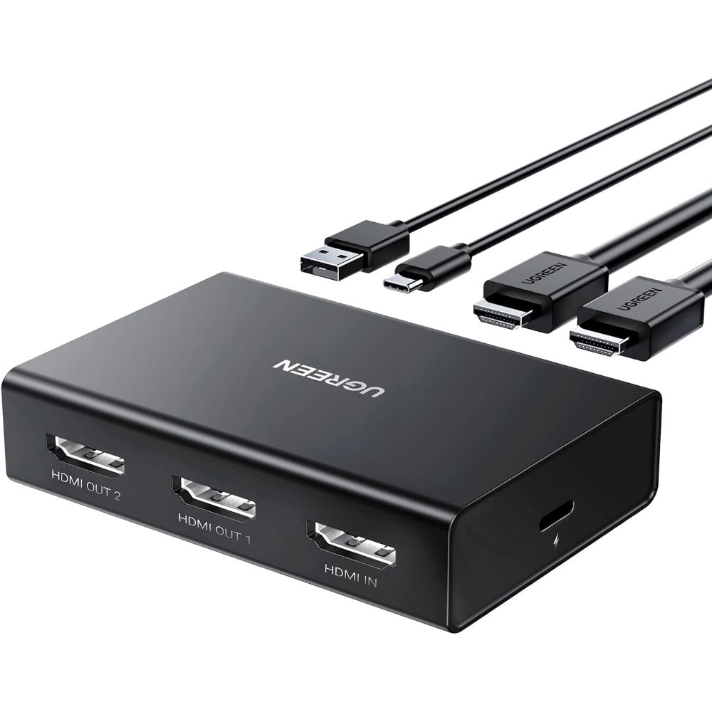 UGREEN HDMI Splitter 1 in 2 Out 4K@60Hz HDR, HDCP 2.2, EDID Control, Zero Latency for Gaming/Streaming, Dual Monitor/TV Setup – Mini Size with HDMI & USB-C Power Cable