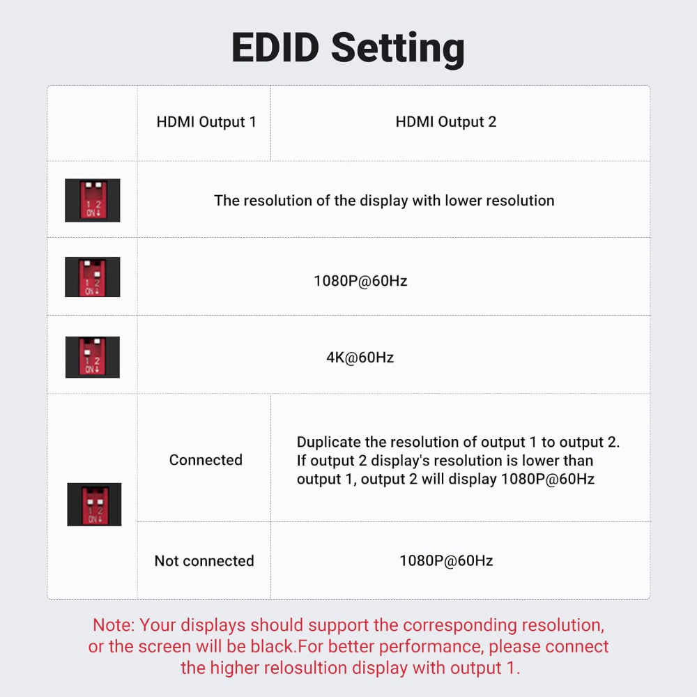 ✔ EDID Control: Solve compatibility issues with 4 presets (prioritize resolution, HDR, etc.).
