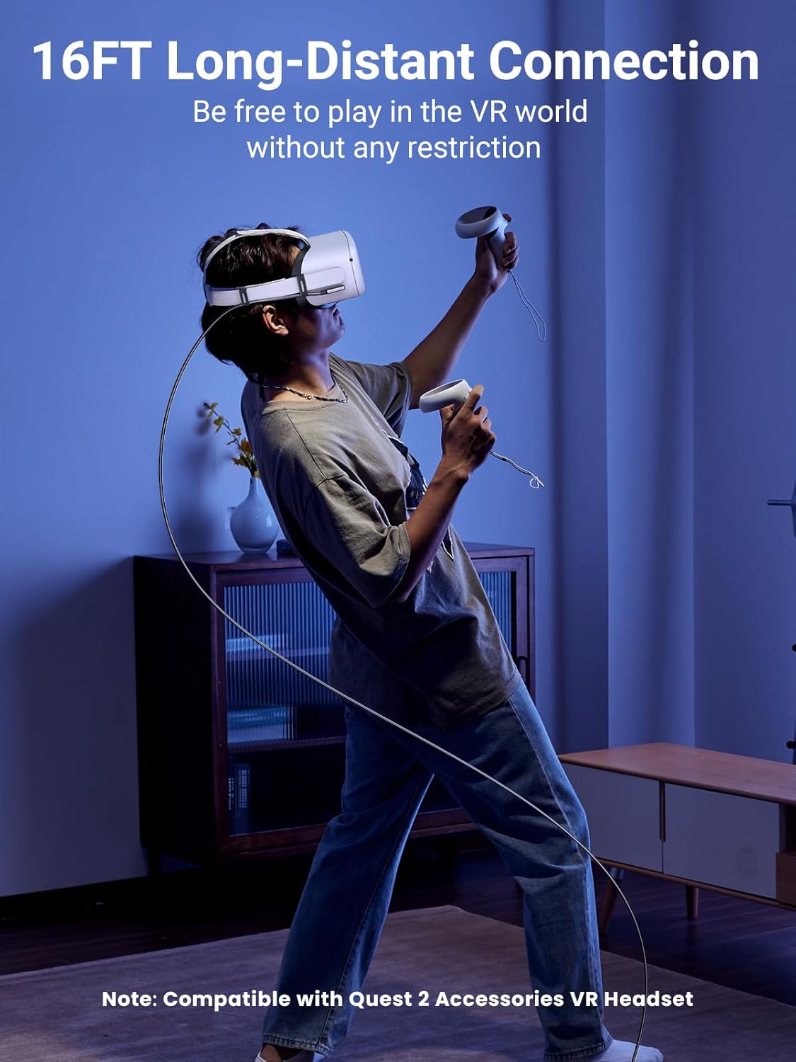 A: Yes, this cable is fully compatible with Oculus Quest 2, Pico 4, and other VR headsets. The 5-meter length gives you freedom of movement while connected to your PC. This is a 100% original product available from the Official UGREEN Store in Pakistan, ensuring authenticity and quality. Explore the full UGREEN Charging and Data Cables collection