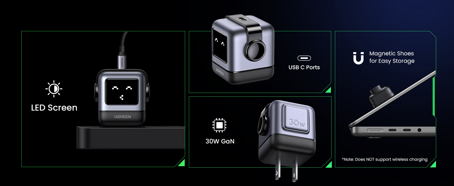 - RobotGaN Charger: Our cute 65W USB C charger combines functionality with playfulness.