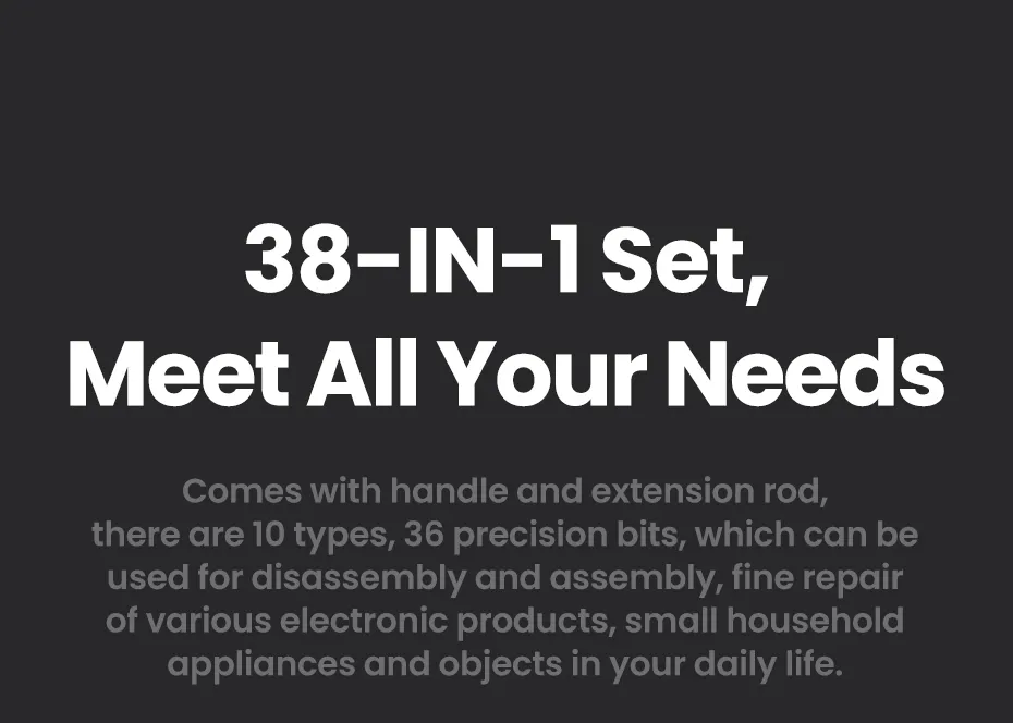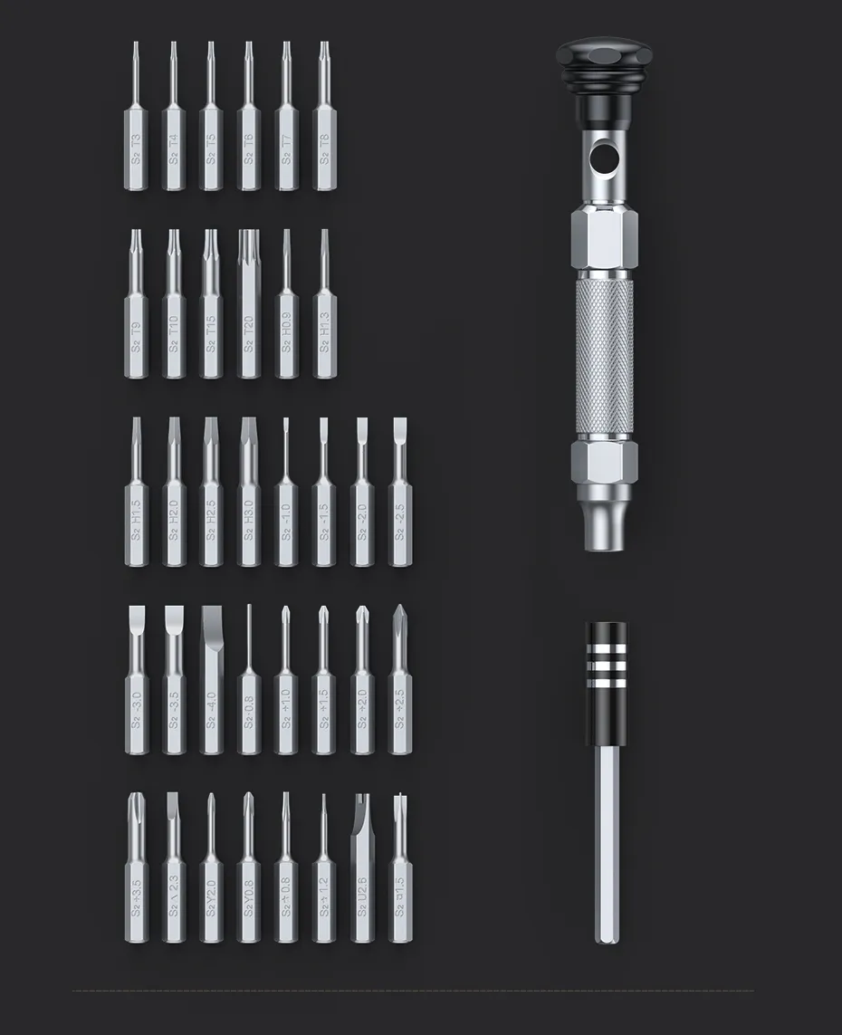 - Versatile 38-in-1 Screwdriver Set: Ideal for mobile phones, notebooks, cameras, watches, and clocks.