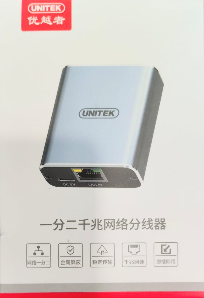 - 1 x UNITEK U1347A 1-to-2 Gigabit Network Splitter
