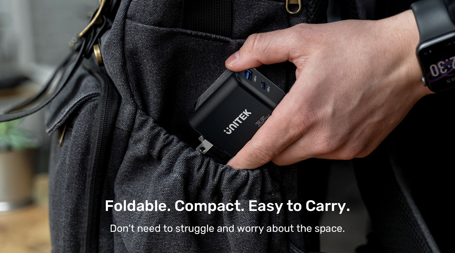 FOLDABLE PLUG DESIGN – Features a foldable plug for convenient storage and portability, making it an ideal charger for travel or on-the-go use.