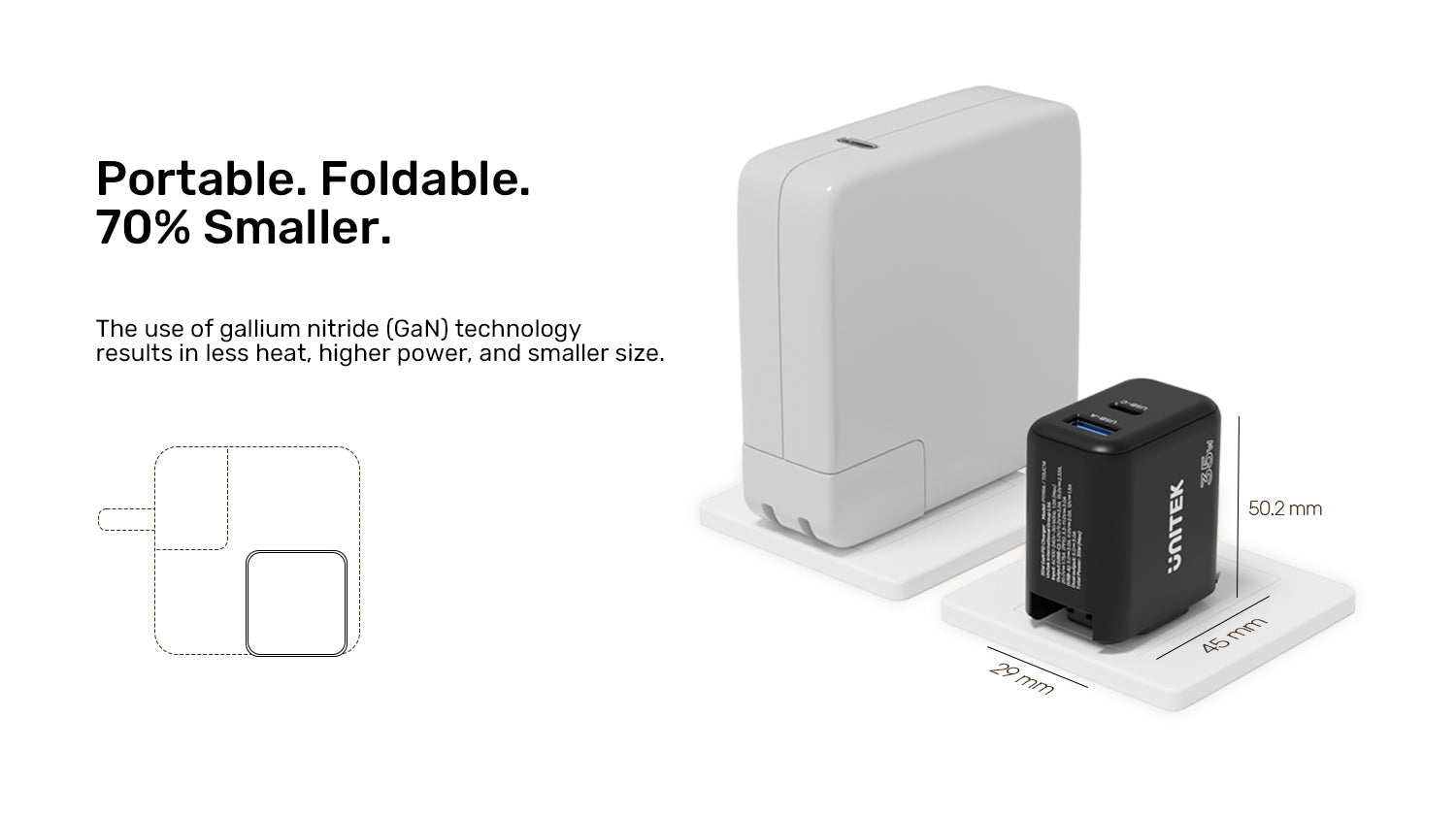 ADVANCED GaN III TECHNOLOGY – Powered by GaN III technology, this charger offers better performance with less heat, in a remarkably smaller size.