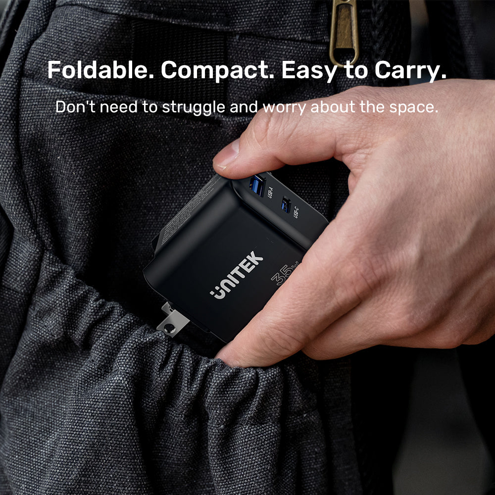 COMPACT & PORTABLE DESIGN – 60% smaller than traditional 35W chargers, this ultra-compact GaN charger fits in your pocket, perfect for travel and daily use.