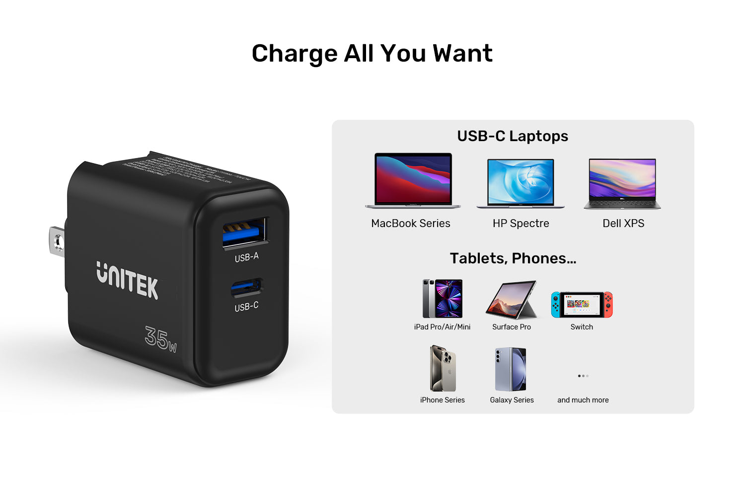 WIDE DEVICE COMPATIBILITY – Supports multiple fast charging protocols, making it ideal for charging earbuds, smartphones, tablets, and even a MacBook Air.
