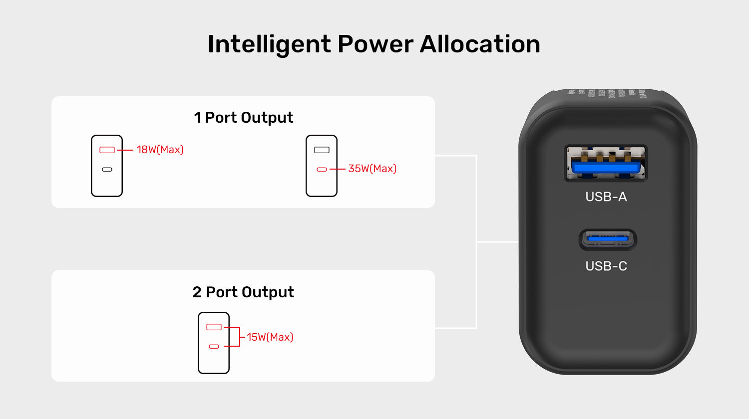 DUAL-PORT FAST CHARGING – Equipped with PD 35W USB-C and QC 18W USB-A ports, allowing you to charge two devices simultaneously at high speed.
