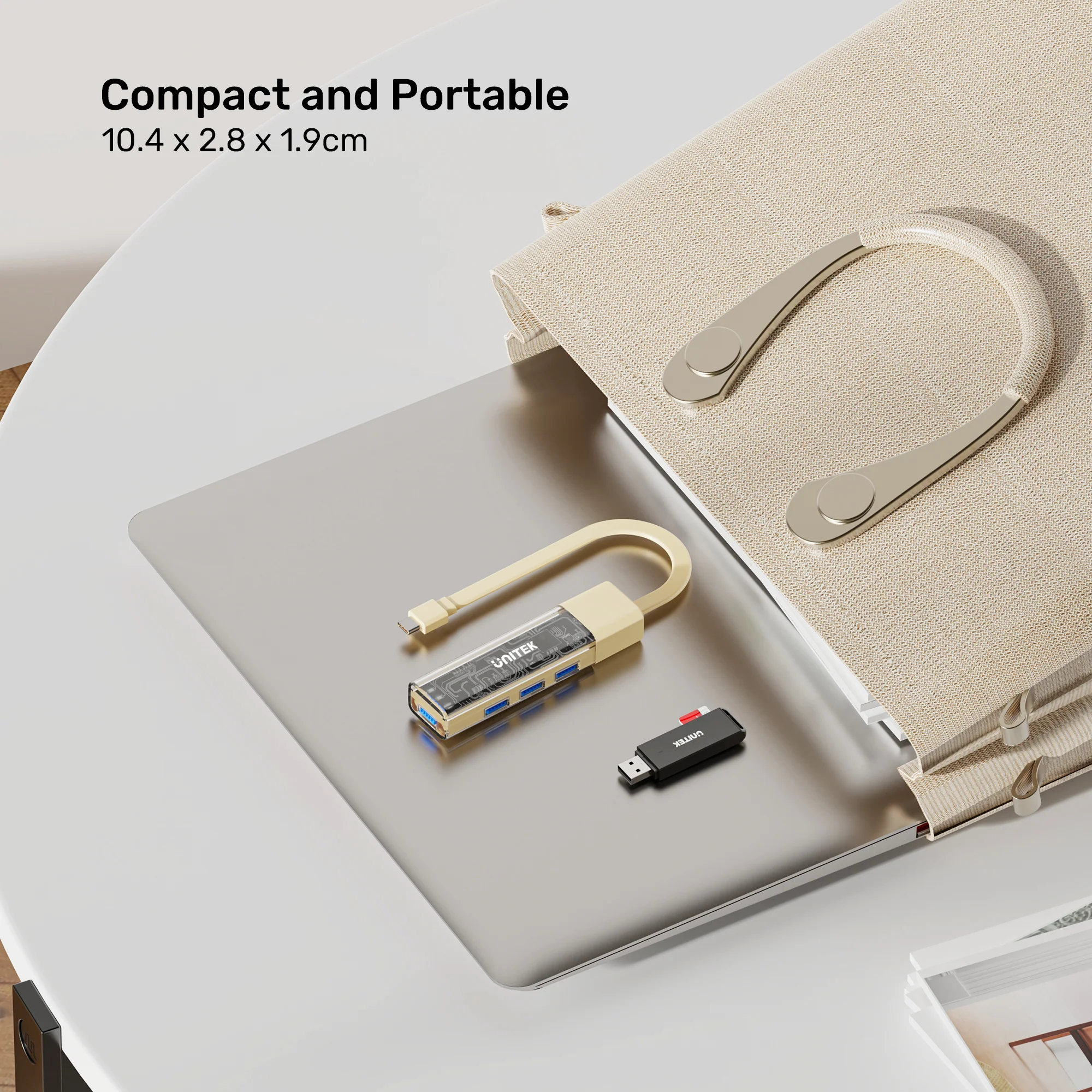 UNITEK H1319ACL01 4-Port USB-A Bi-Directional Hub with Detachable Cable – 5Gbps High-Speed Data Transfer, USB-C & USB-A Compatibility, Scratch-Resistant Design, Plug & Play for PC, Laptop, Mac, and Android (Cream Latte)