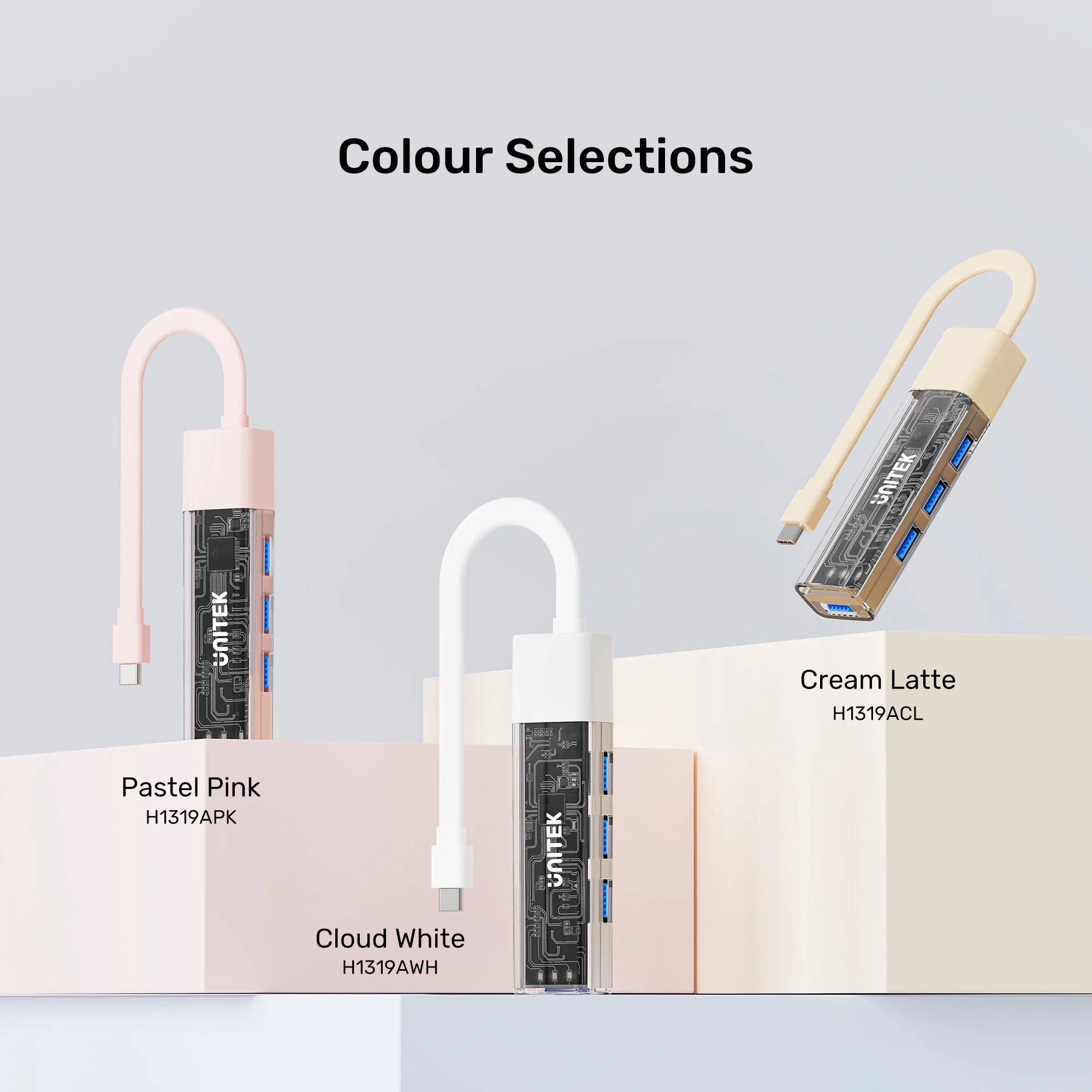 The UNITEK H1319ACL01 4-Port USB-A Bi-Directional Hub is the perfect solution for expanding your device’s connectivity while adding a touch of elegance to your workspace. Designed with a scratch-resistant, high-gloss finish and available in three stunning pastel colors (Pastel Pink, Cream Latte, and Cloud White), this hub combines style with functionality.