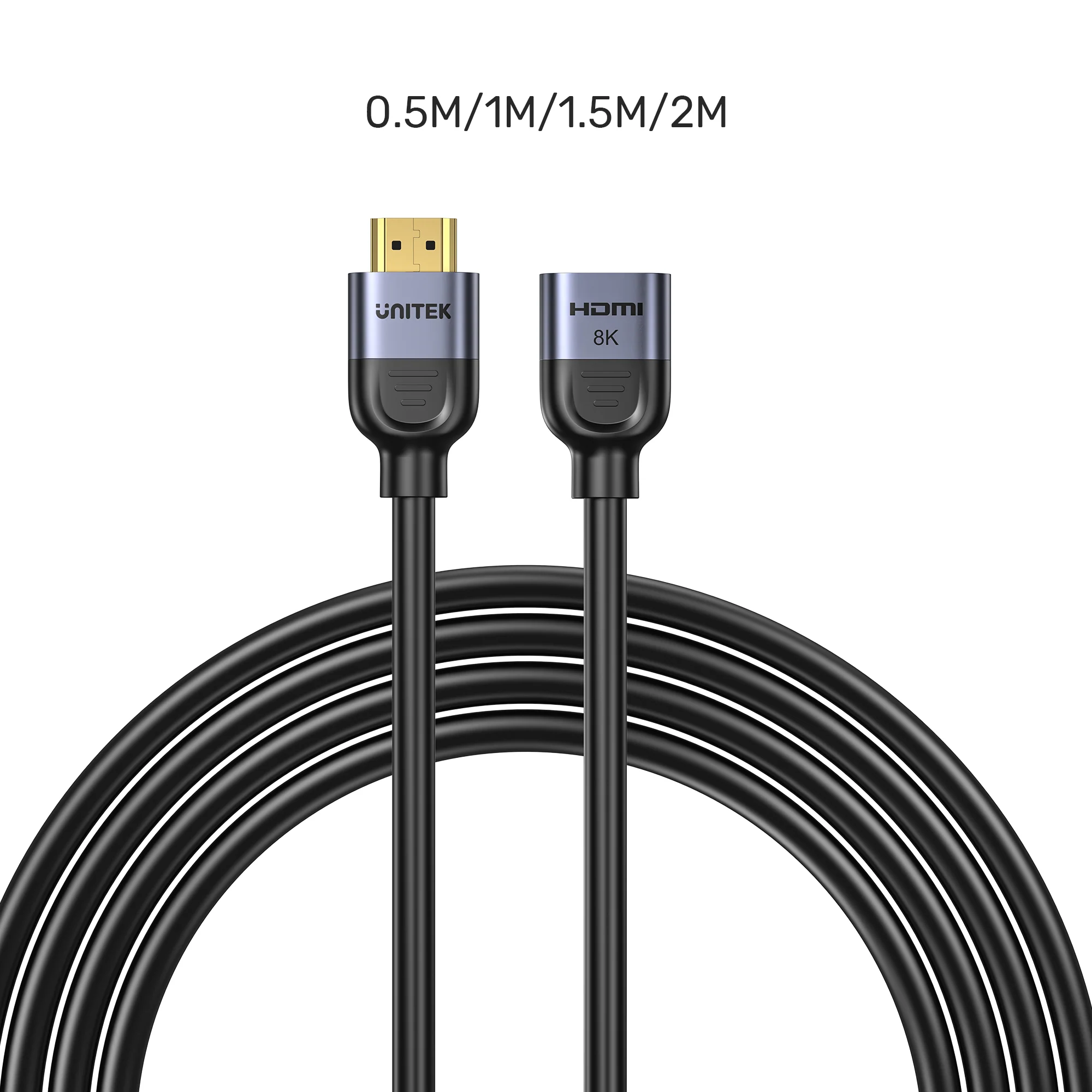UNITEK C11091AGY01-1M Ultra Stream 8K HDMI Extension Cable, 48Gbps High Speed, 8K@60Hz, 4K@120Hz, Dynamic HDR, Gold-Plated Connectors, Male to Female, Compatible with PS5, Xbox, PC, TV, Gaming Monitor (1 Meter)