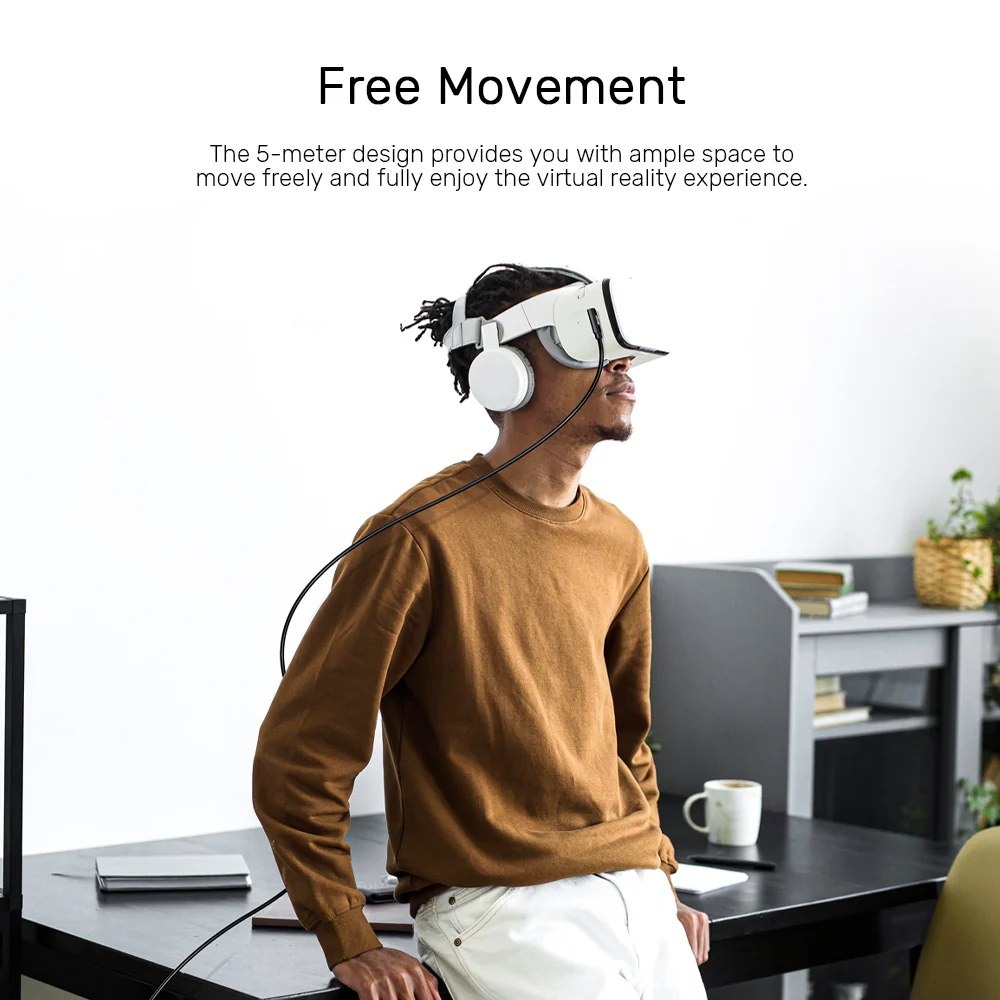 Engineered specifically for virtual reality, the UNITEK VR Link Pro Cable combines 5Gbps data and 60W power delivery in a durable 5-meter package. The 90° connectors reduce pressure on your headset’s USB-C port during active gameplay, while the flexible braided design moves naturally with you.