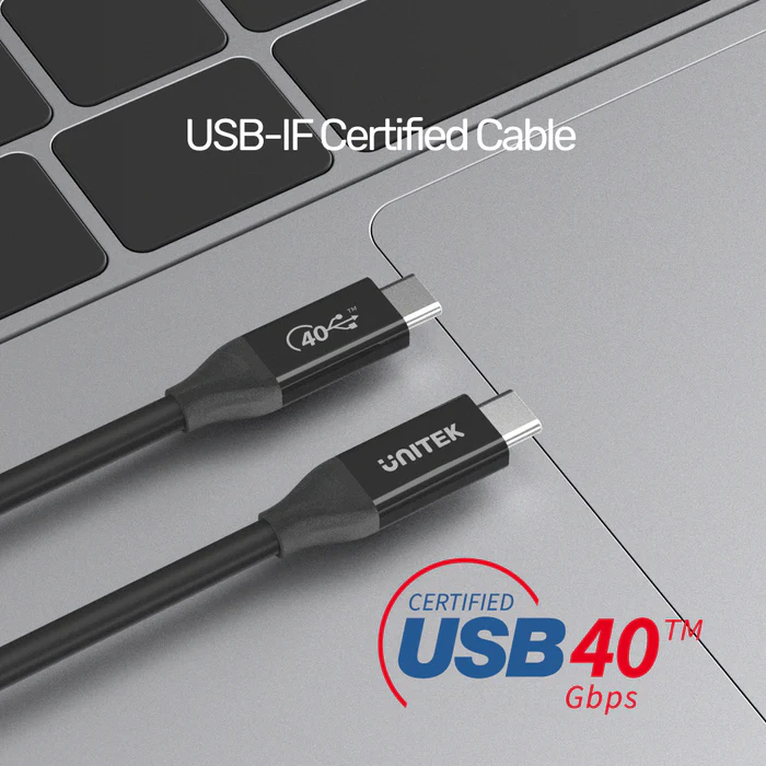 UNITEK C14100BK-0.8M USB4 Certified 100W PD Fast Charging Cable, 40Gbps Data Transfer, 8K@60Hz Video, Thunderbolt 3/4 Compatible, USB-IF Certified, for MacBook Pro, Dell XPS, iPad Pro, Samsung Galaxy, 0.8M Black