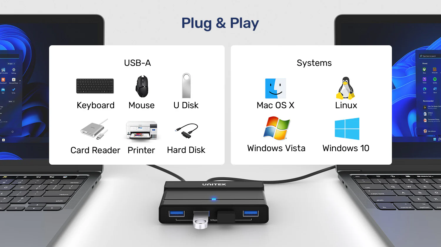 Unlike simpler USB 2.0 switches, this hub provides full USB 3.0 SuperSpeed (5Gbps) bandwidth. Therefore, you can connect an external SSD or hard drive and enjoy fast file transfers without needing to physically move the drive. The dedicated high-power port ensures even bus-powered drives work reliably. For the best experience, pair it with quality UGREEN USB 3.0 cables.