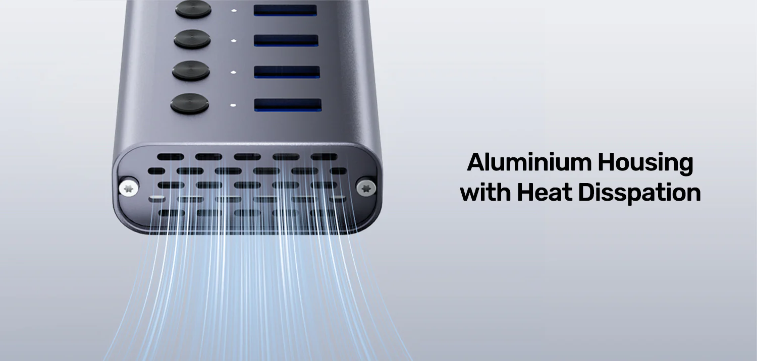 - Downstream Ports: 7 x USB-A (5Gbps Data + BC1.2 Charging)