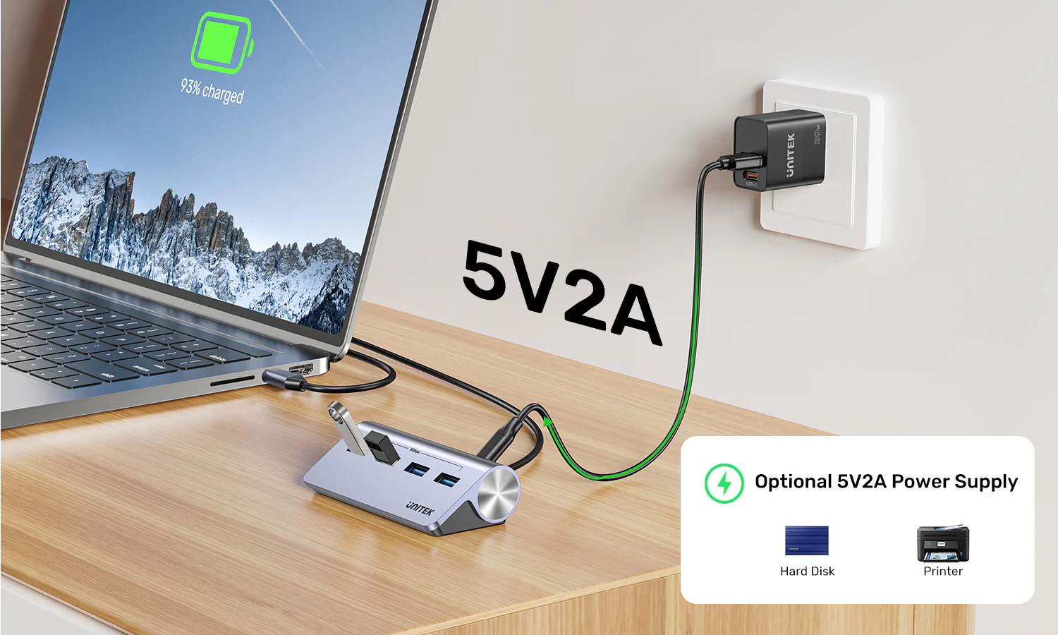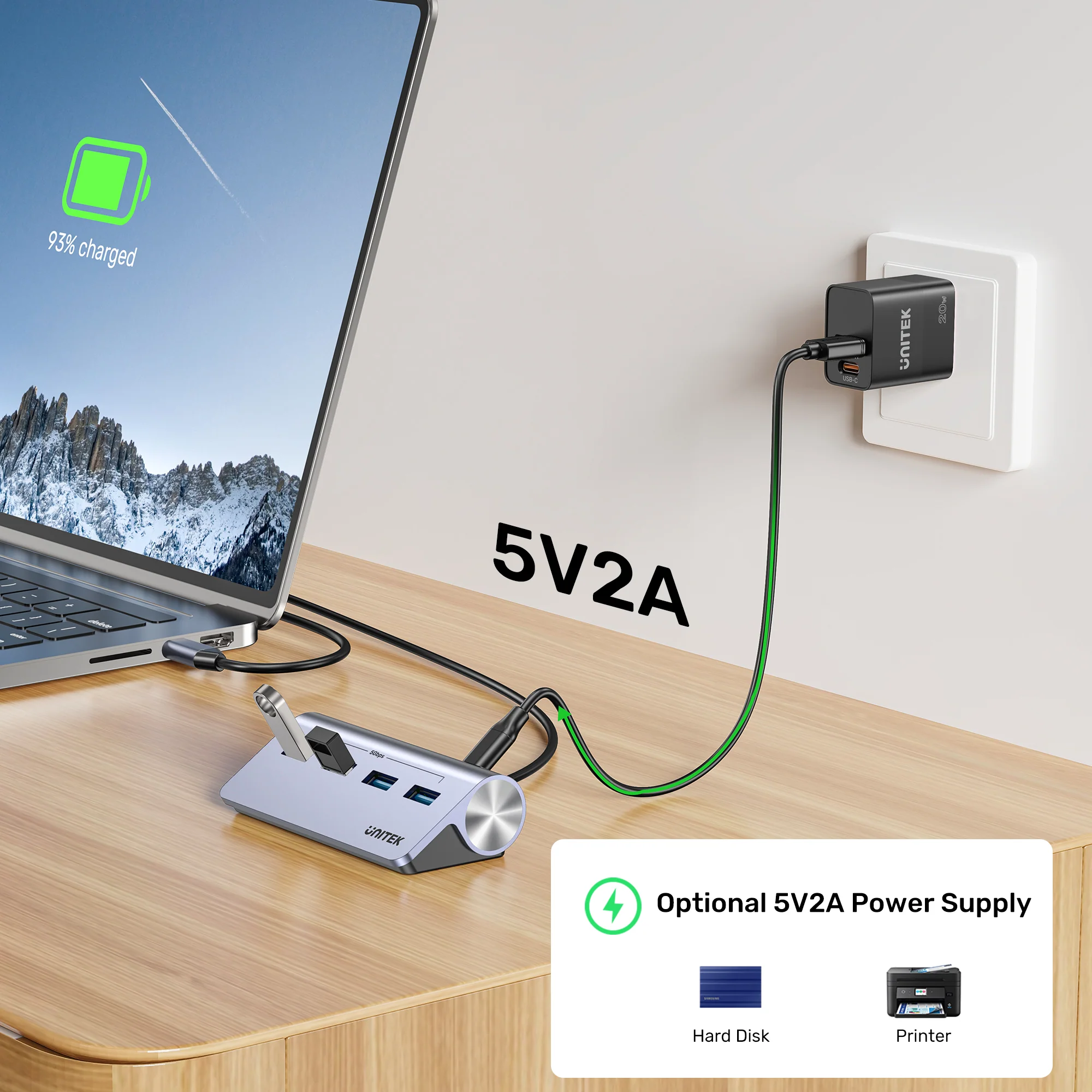 You can use any quality 5V/2A (10W) USB power adapter with a USB-C cable. We recommend using reliable brands like UNITEK or UGREEN. Browse UGREEN’s power adapters for a suitable option.