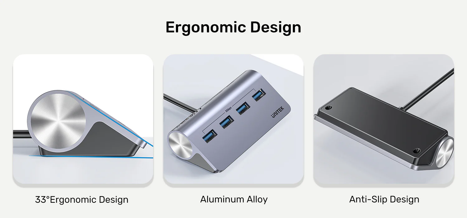 Designed with user experience in mind, the 33-degree slope makes plugging and unplugging cables intuitive and strain-free. Moreover, the unibody aluminum construction not only looks premium but also effectively dissipates heat, protecting your connected devices and ensuring the hub’s durability for years of reliable service.