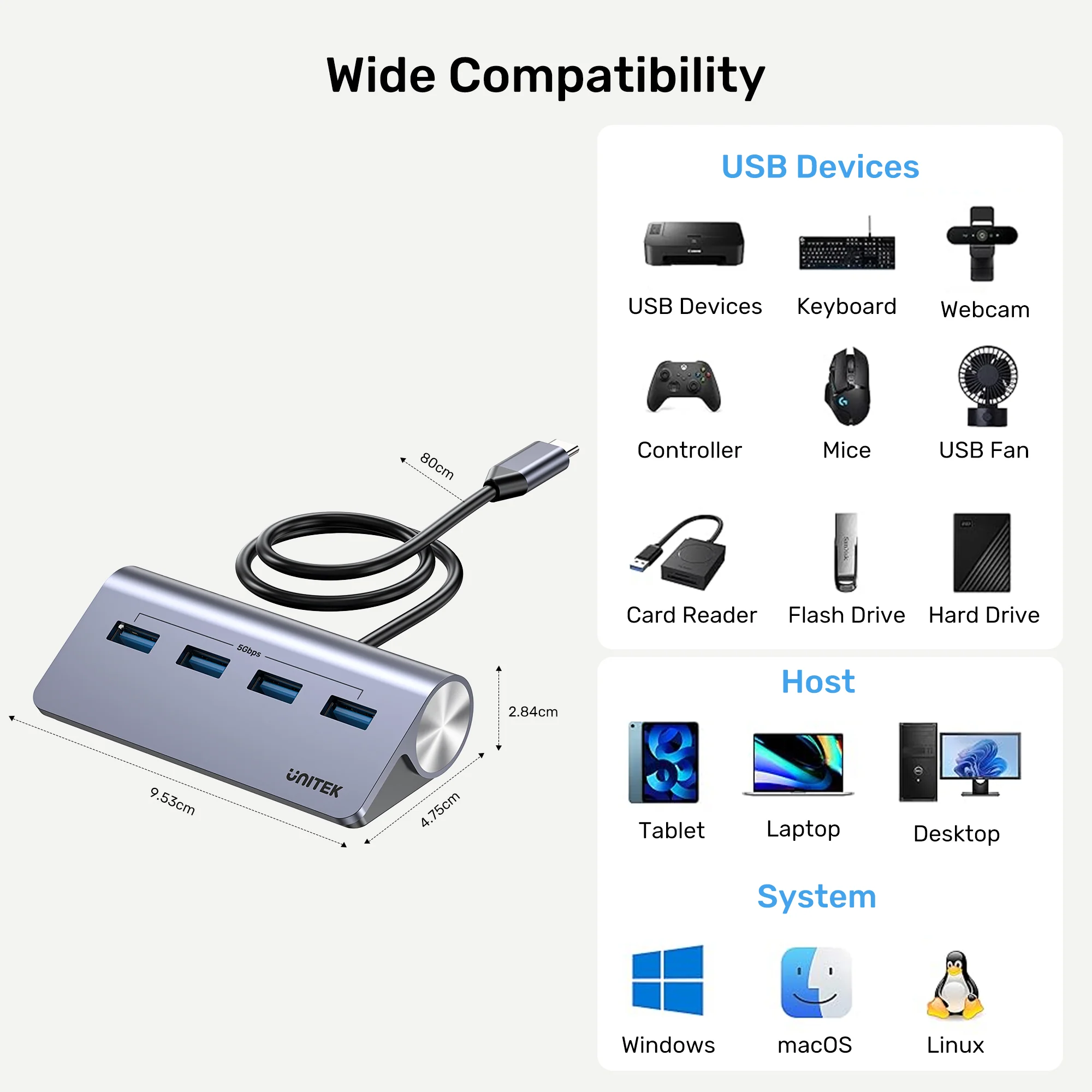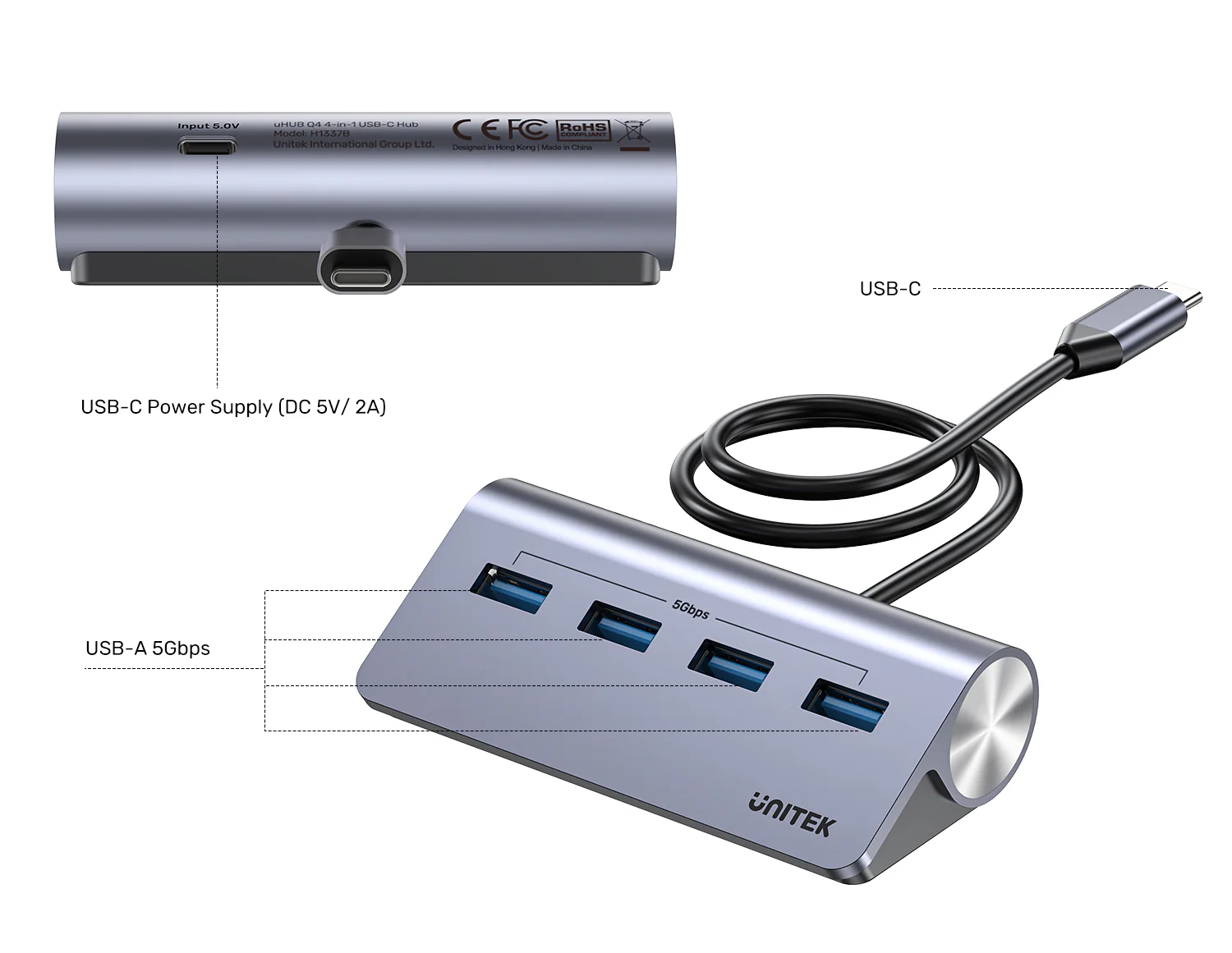 - Model: UNITEK H1337BGY01 (uHUB Q4)