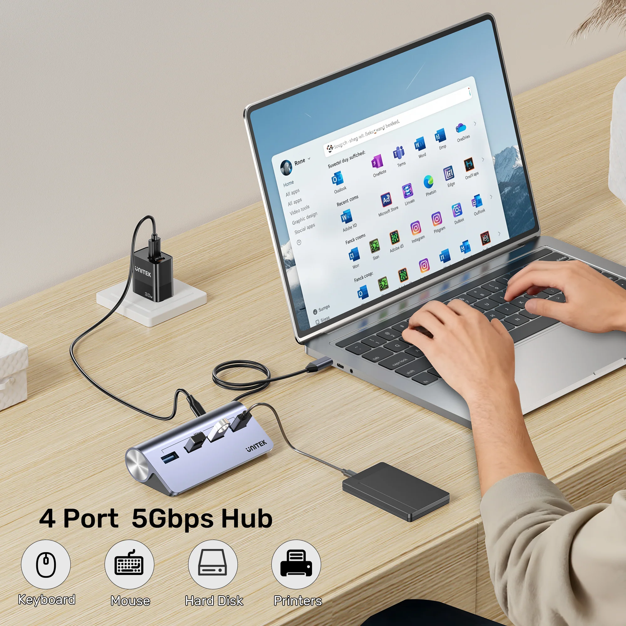 Maximize your laptop’s potential without sacrificing a sleek profile. The UNITEK uHUB Q4 is a smartly designed, high-performance USB-C hub that delivers essential expansion for modern thin-and-light laptops. It combines fast data transfer, reliable powered operation, and an ingenious ergonomic design in a compact, all-metal form factor.