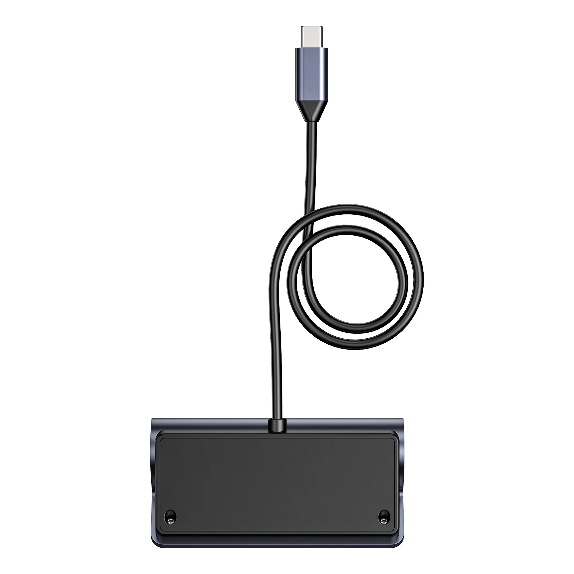 The 80cm (31-inch) attached cable provides ample length to position the hub conveniently on your desk, whether your laptop is on a stand, docked, or sitting directly on the desk surface.