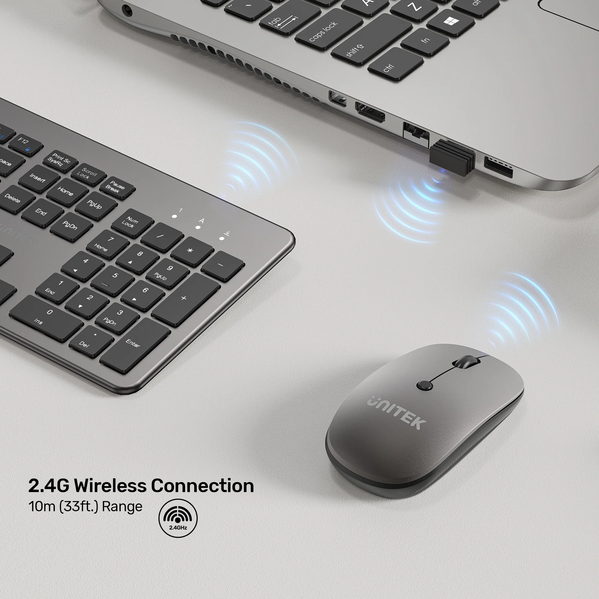 The key advantage is its advanced 2.4GHz wireless transmission for a stable signal and strong anti-interference capabilities with a range of up to 10 meters (33 feet). The plug and play design allows easy setup—just connect the compact USB receiver to your computer or laptop for instant connectivity without drivers . For more wireless solutions, browse the UNITEK Bluetooth Adapters and the UGREEN Wireless Peripherals.