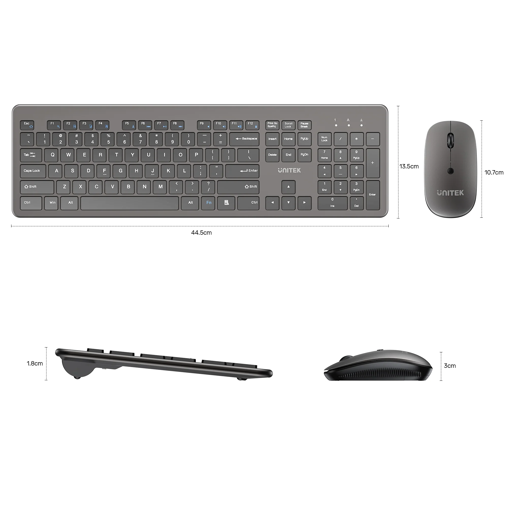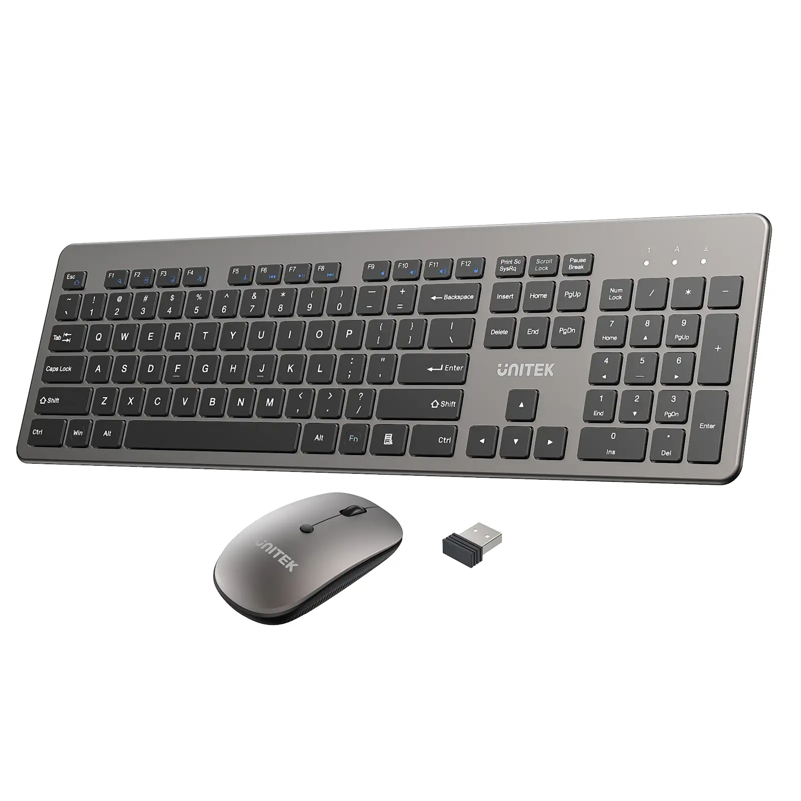 UNITEK T054AGY01-US SlimDuo 2.4GHz Wireless Keyboard and Mouse Combo, Silent Ergonomic Keyboard with Top-Raising Design, 1600 DPI Optical Mouse with 3 DPI Settings, Plug and Play, 10m Range, for Windows Mac Linux – Space Grey
