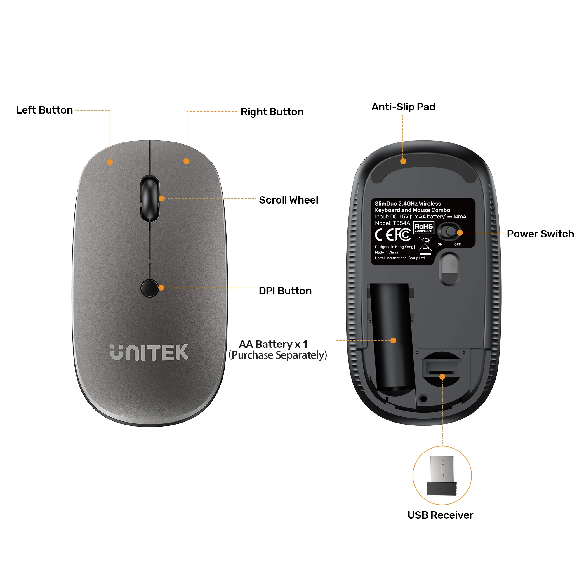 The compact USB receiver can be stored inside the mouse’s battery compartment when not in use. For more UNITEK connectivity solutions, browse the UNITEK USB C Hubs and the UGREEN Cables.