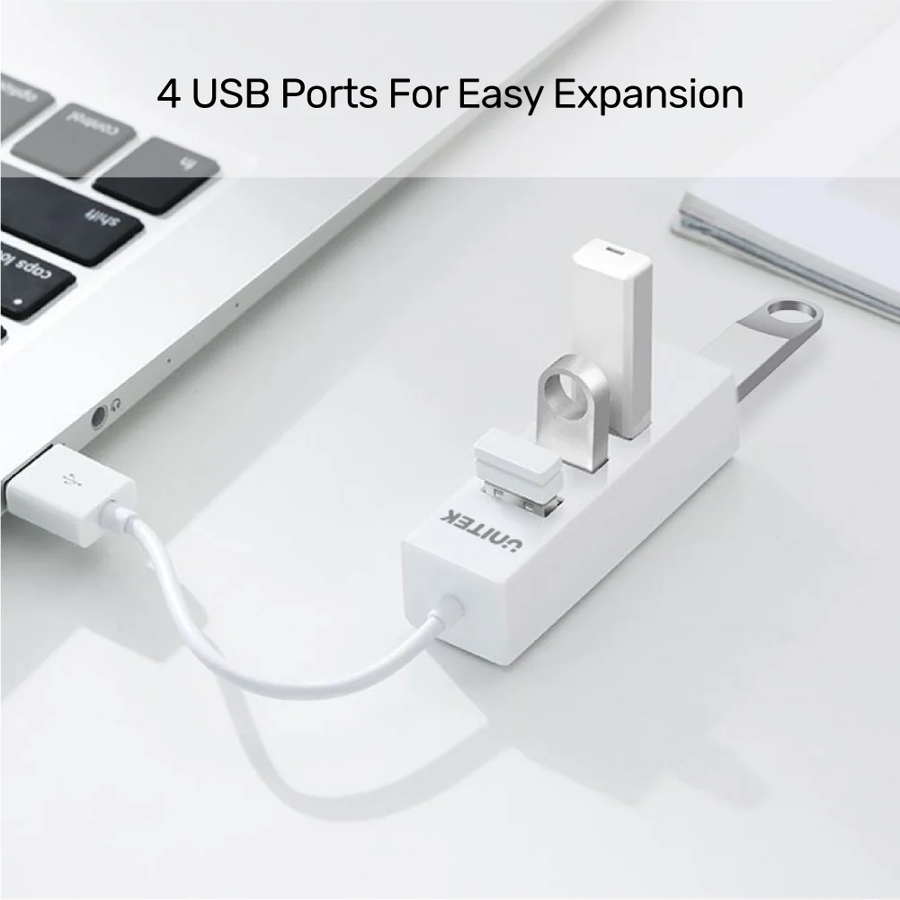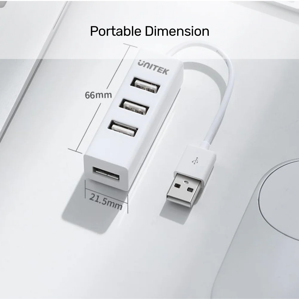 UNITEK Y-2146 4-Port USB 2.0 Hub – Compact USB Splitter for Laptop, PC, Mac | 480Mbps Data Transfer | Plug & Play | White